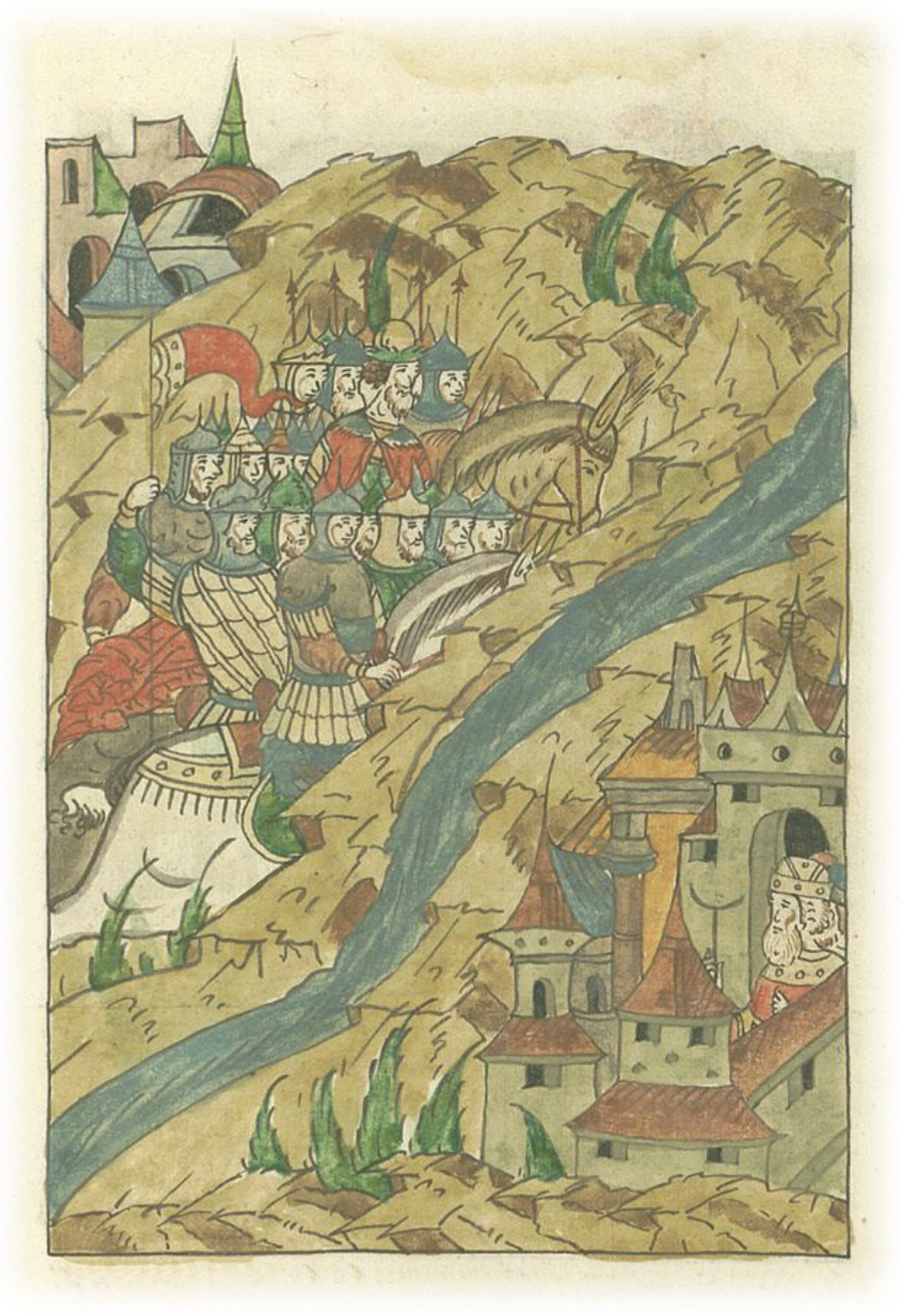 Воеводы царя Ивана Васильевича, разделившись, идут в погоню за царем Емгурчеем.
