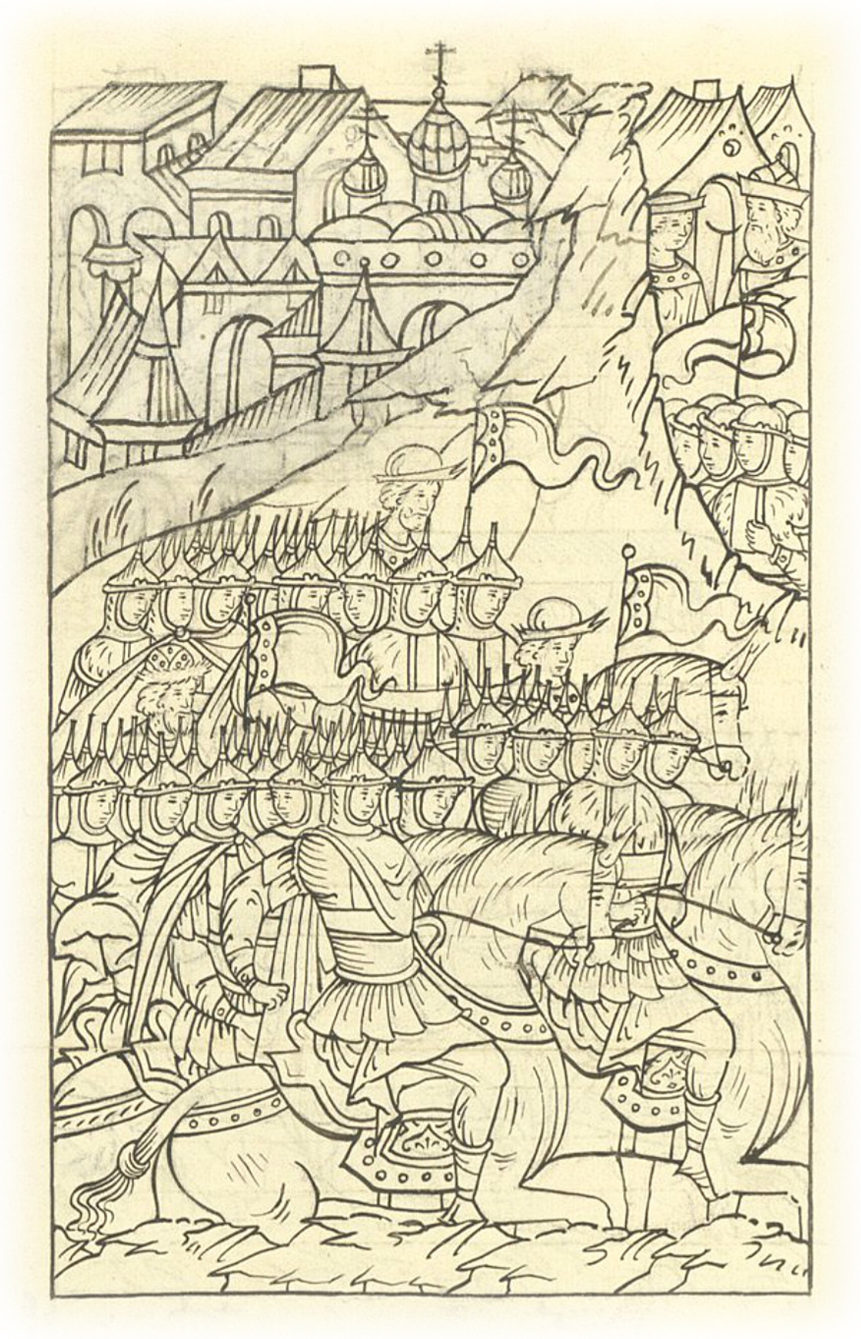в передовом полку – боярина своего конюшего князя Ивана Федоровича Телепнева Оболенского да князя Василия, сына князя Федорова Охлябинина;