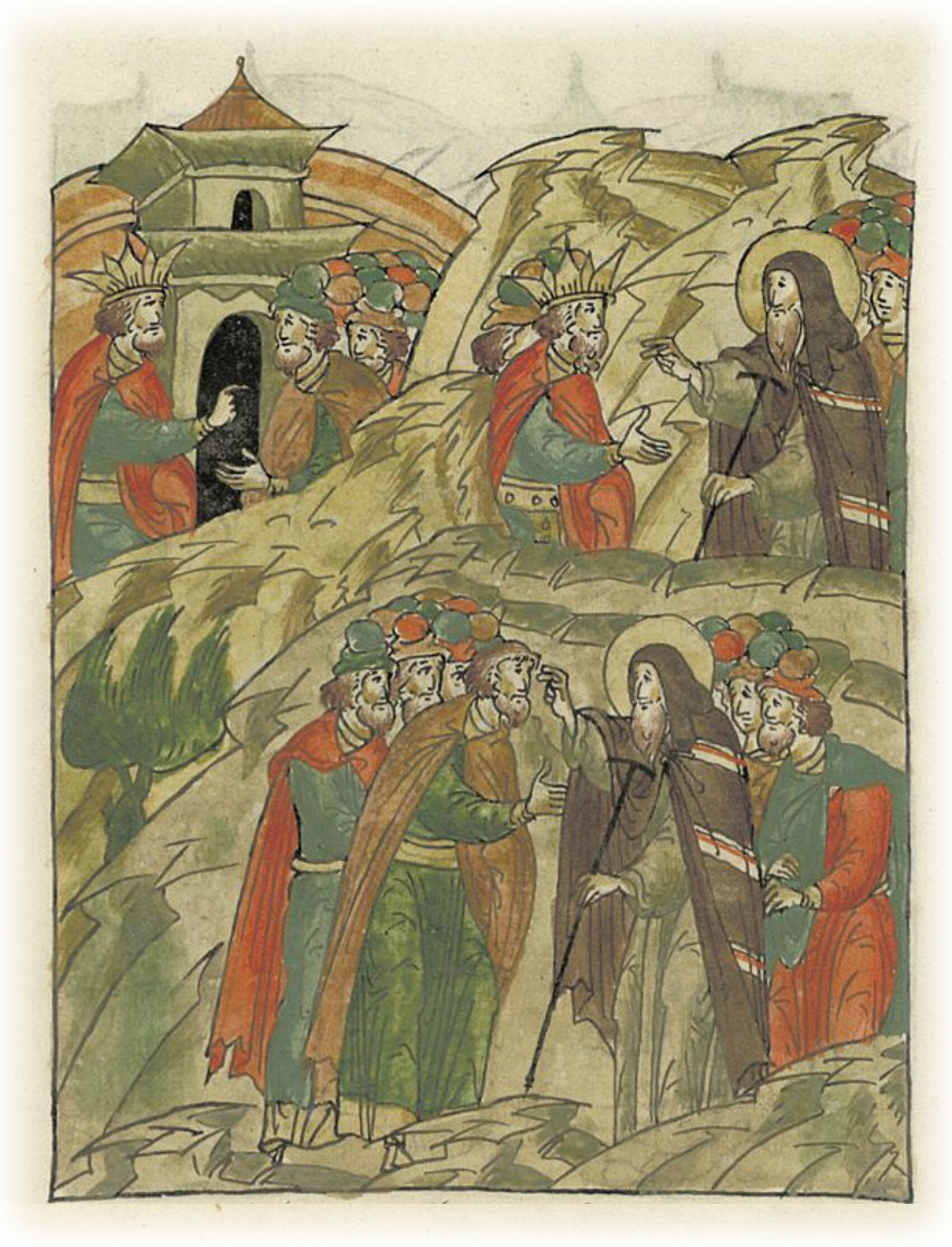 О Савве Сербском. Король Родослав, услышав, что Святой Савва едет в крайние греческие пределы, велит его встретить епископам, игуменам и всем благородным людям Сербской земли, а затем и сам выходит встретить святого.