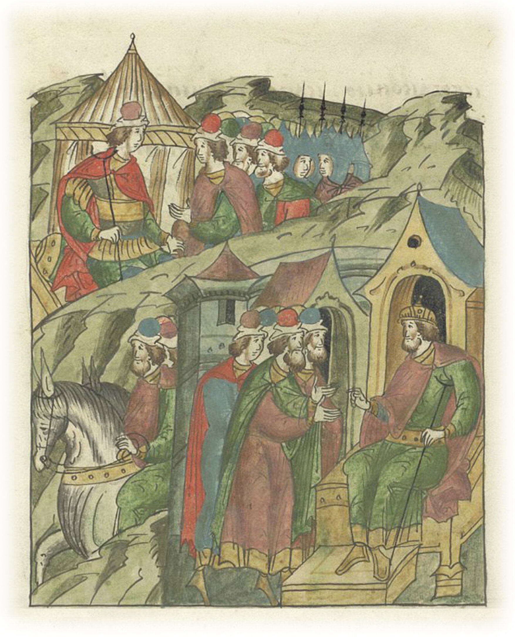 Киевский князь Михаил Всеволодович отвечает воеводе Менгукаку, что не может покориться Батыю, поскольку придерживается христианской веры.