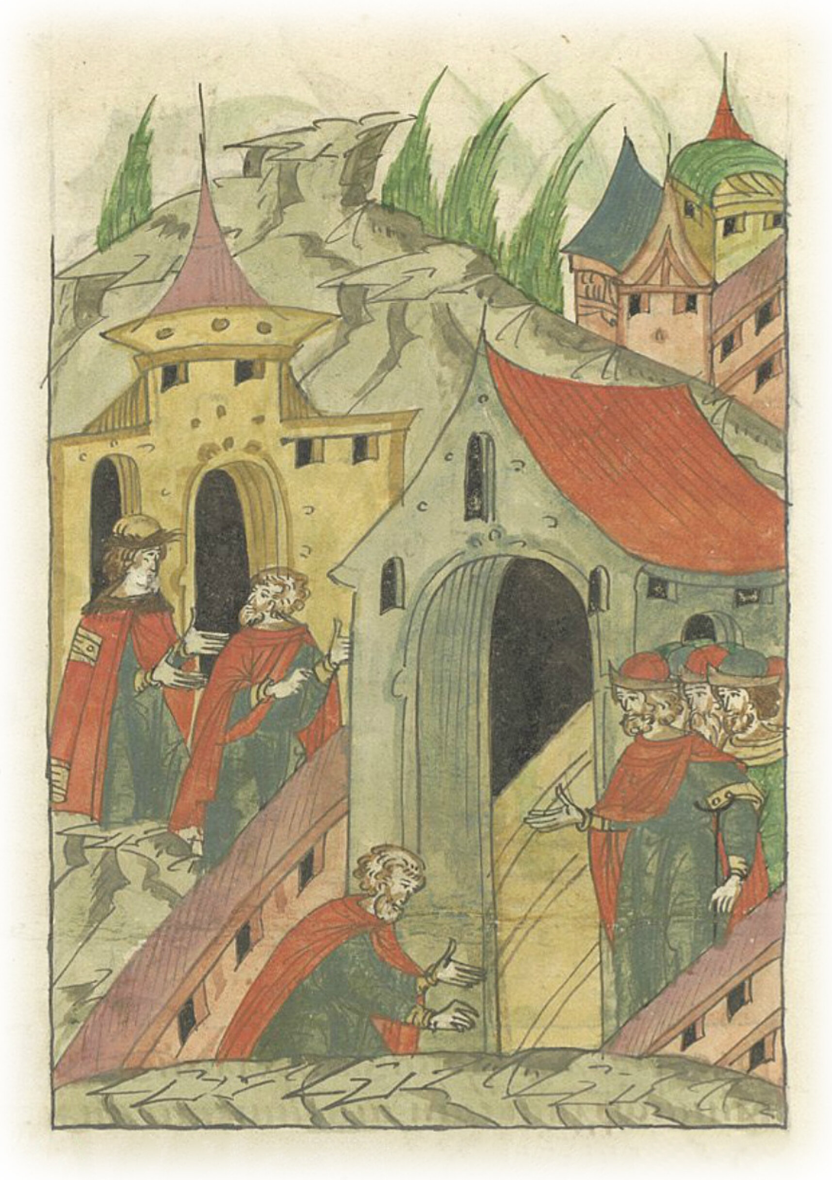 Ругодивские посадники Яким и Захар приезжают в Москву. Воеводы царя Ивана Васильевича Алексей Адашев и Иван Михайлов сообщают им, что государь пожалует их, если сдадут его воеводам помимо Ругодива Вышгород.