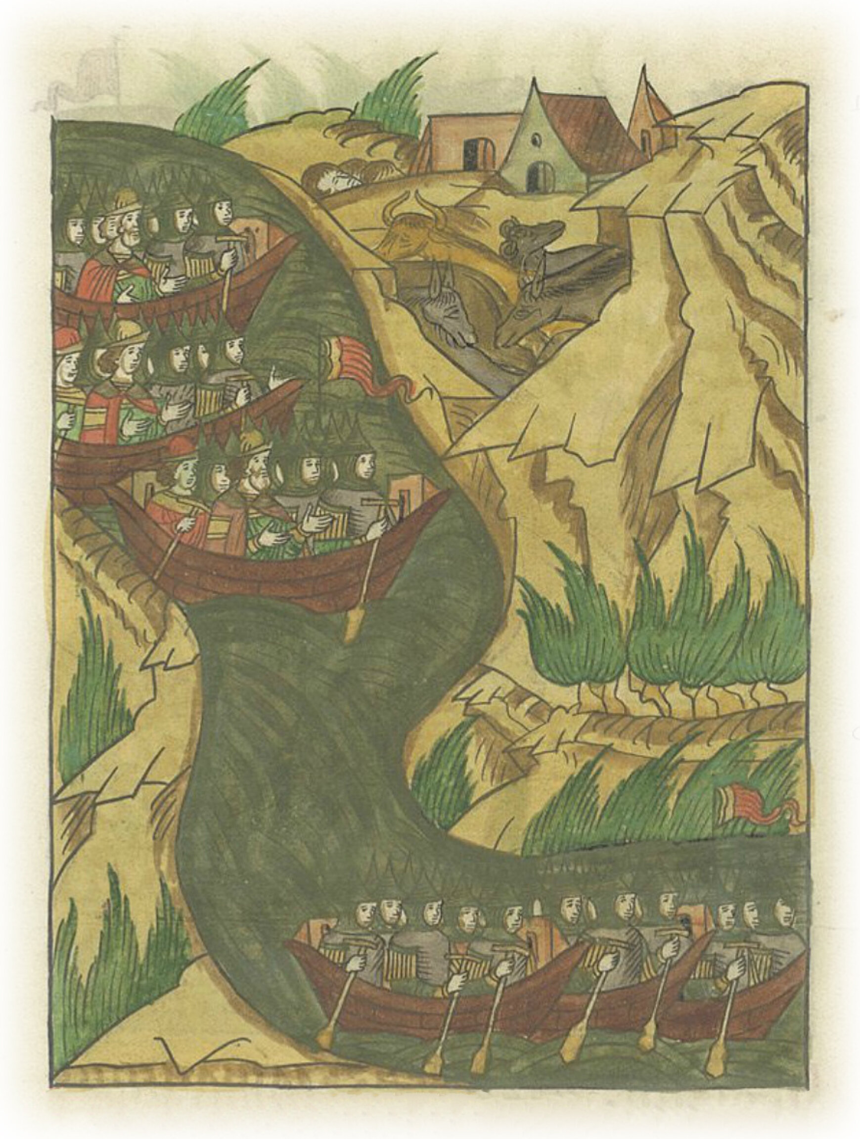 Рать великого князя Ивана Васильевича, перебив черемисов и коней татар, которые пошли вверх по Каме, идет за ними в погоню.