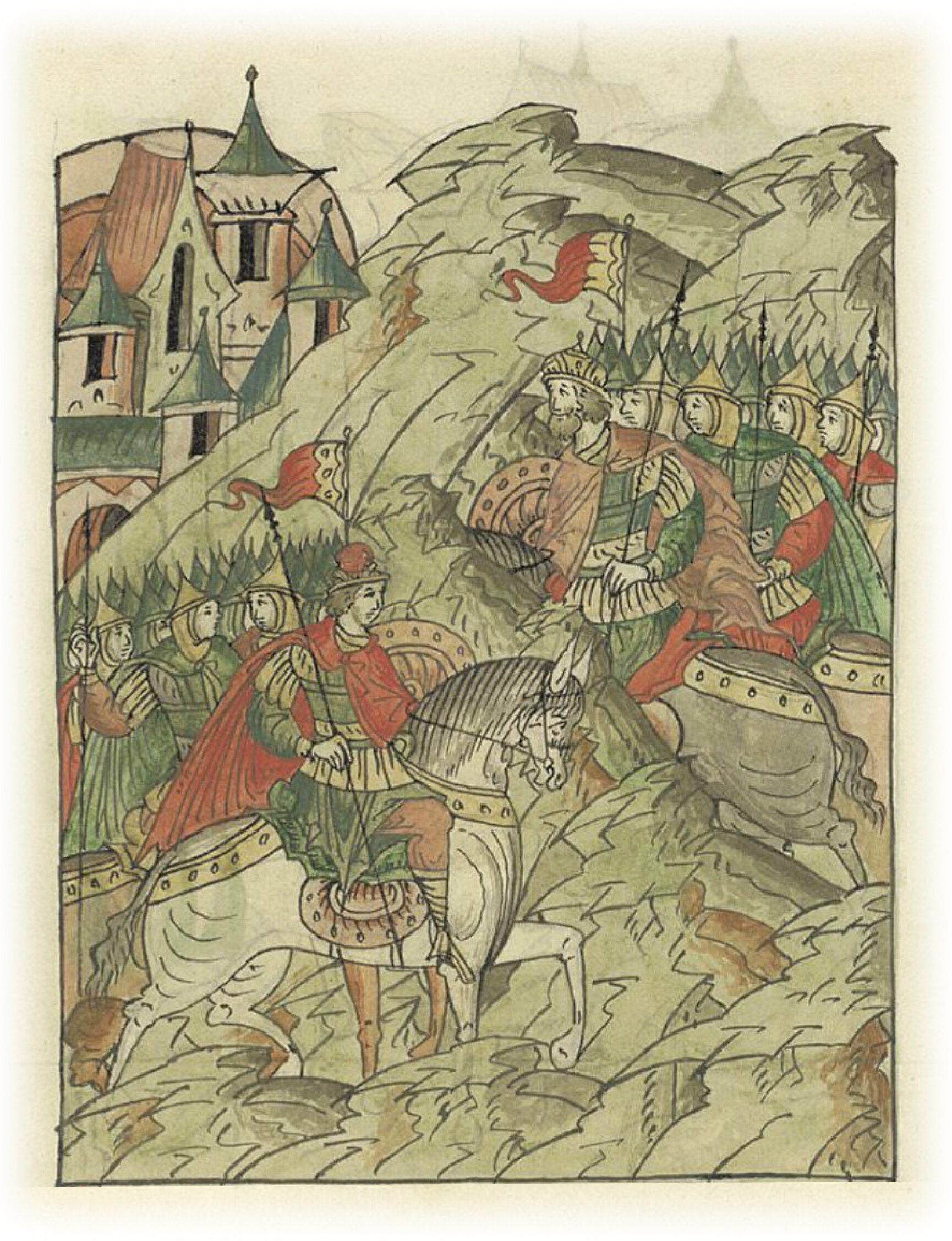 И встретили их болгары с князем своим на конях, и поставили полк на поле. Святослав же быстро двинулся против них, они же, постояв немного,