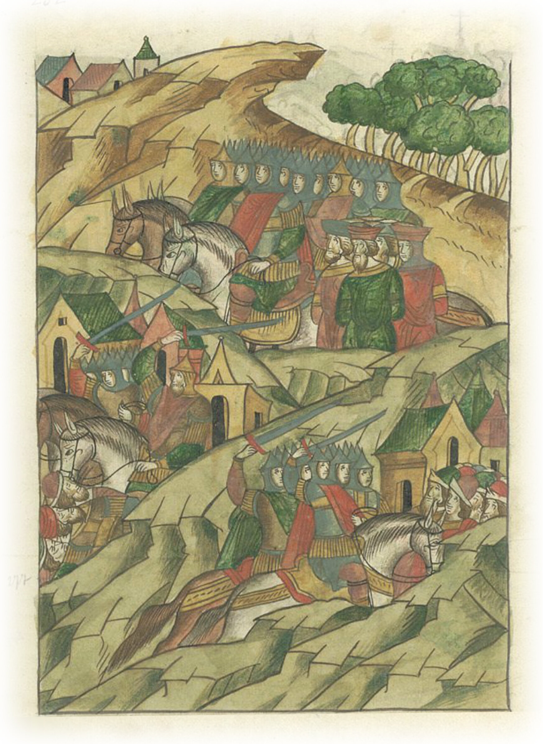Воеводы царя Ивана Васильевича, разделившись, идут в погоню за царем Емгурчеем.