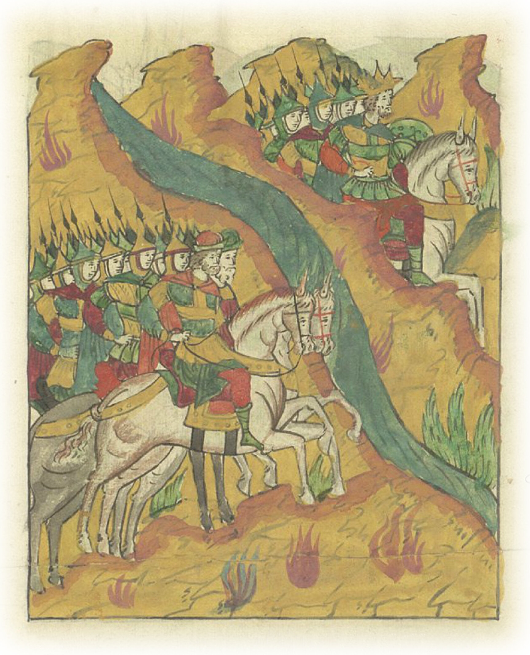 И воеводы за царем пошли тотчас, пришли к Дону, а царь уже через Дон переправился.