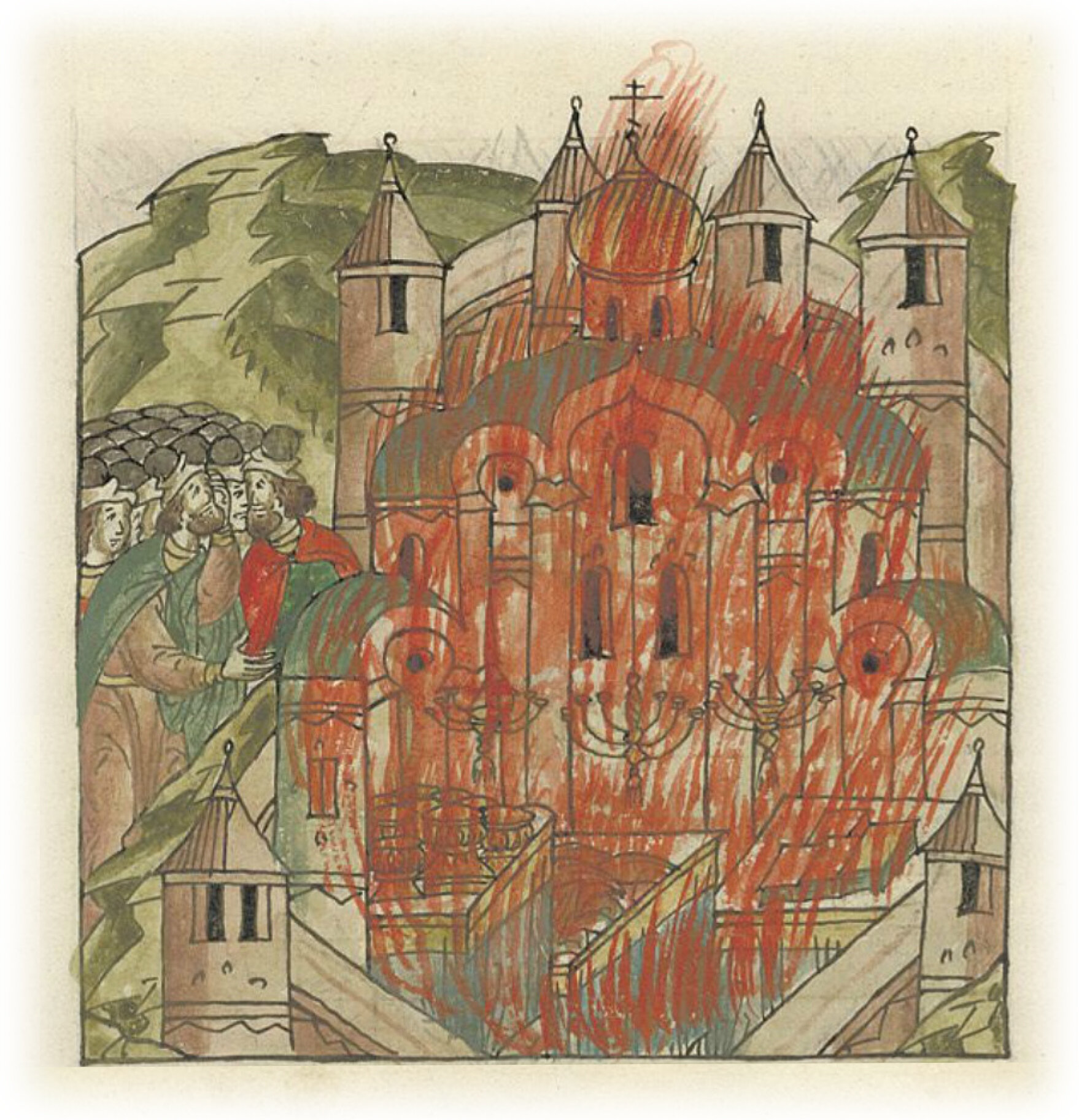 В большом пожаре во Владимире сгорает и великая соборная церковь Пречистой Богородицы Златоверхой, которую построил князь Андрей Боголюбский.