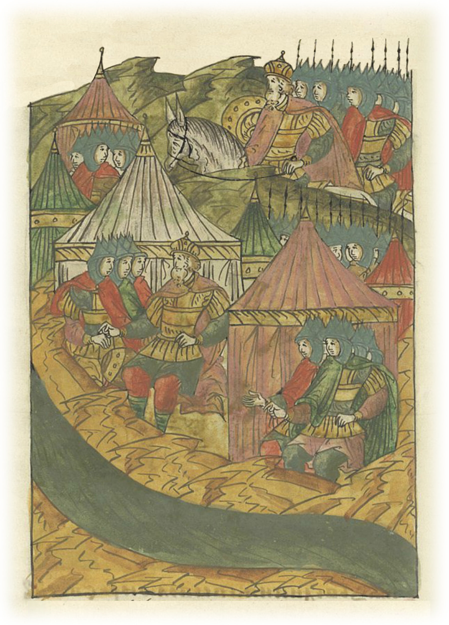 Великий князь Всеволод Юрьевич с огромным войском идет к Оке и ставит на берегу шатры.