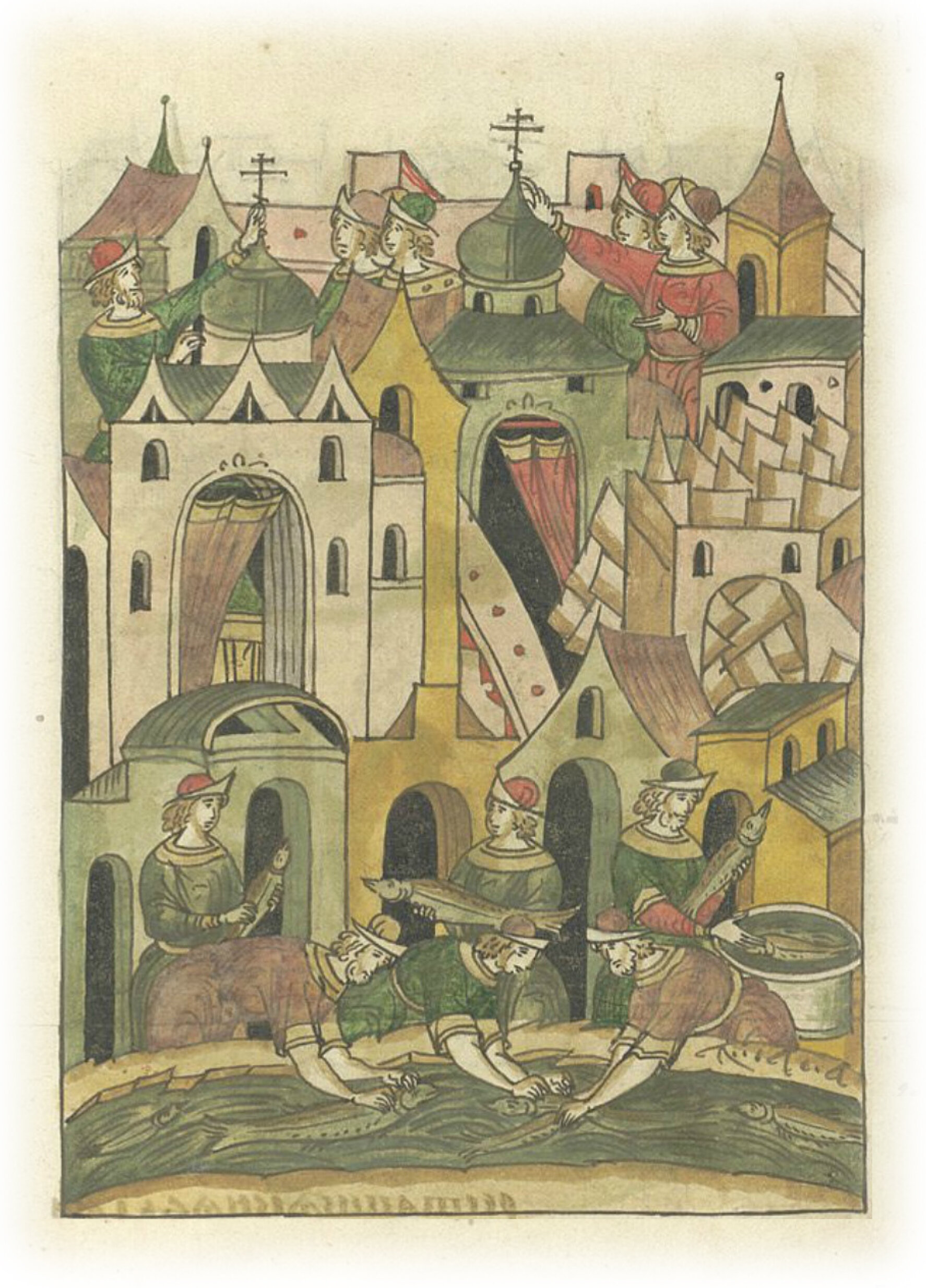 В том же году в Новгороде было поставлено три каменные церкви: Знамения святой Богородицы на Ильине улице, святого Дмитрия на Лубянице, а церковь святых 40 мучеников упала. Люди тогда ловили рыбу в Волхове у берега руками.