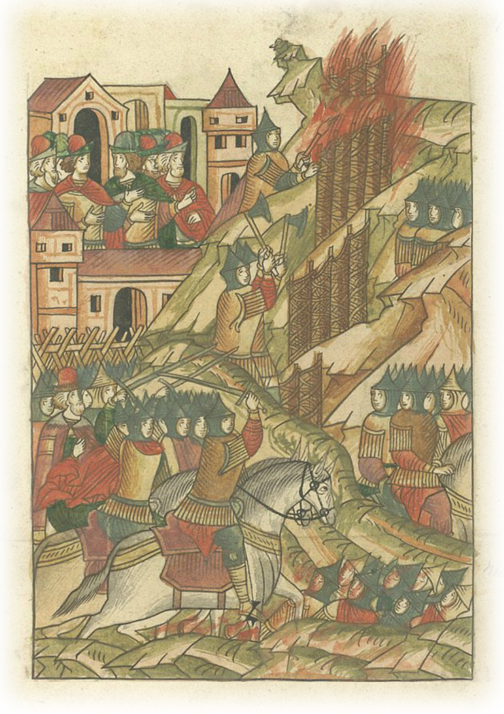 Языки говорят воеводам царя Ивана Васильевича, что магистр окопался большим рвом вокруг города Рындола, бьет из пушек и пищалей и приступает к Рындолу.