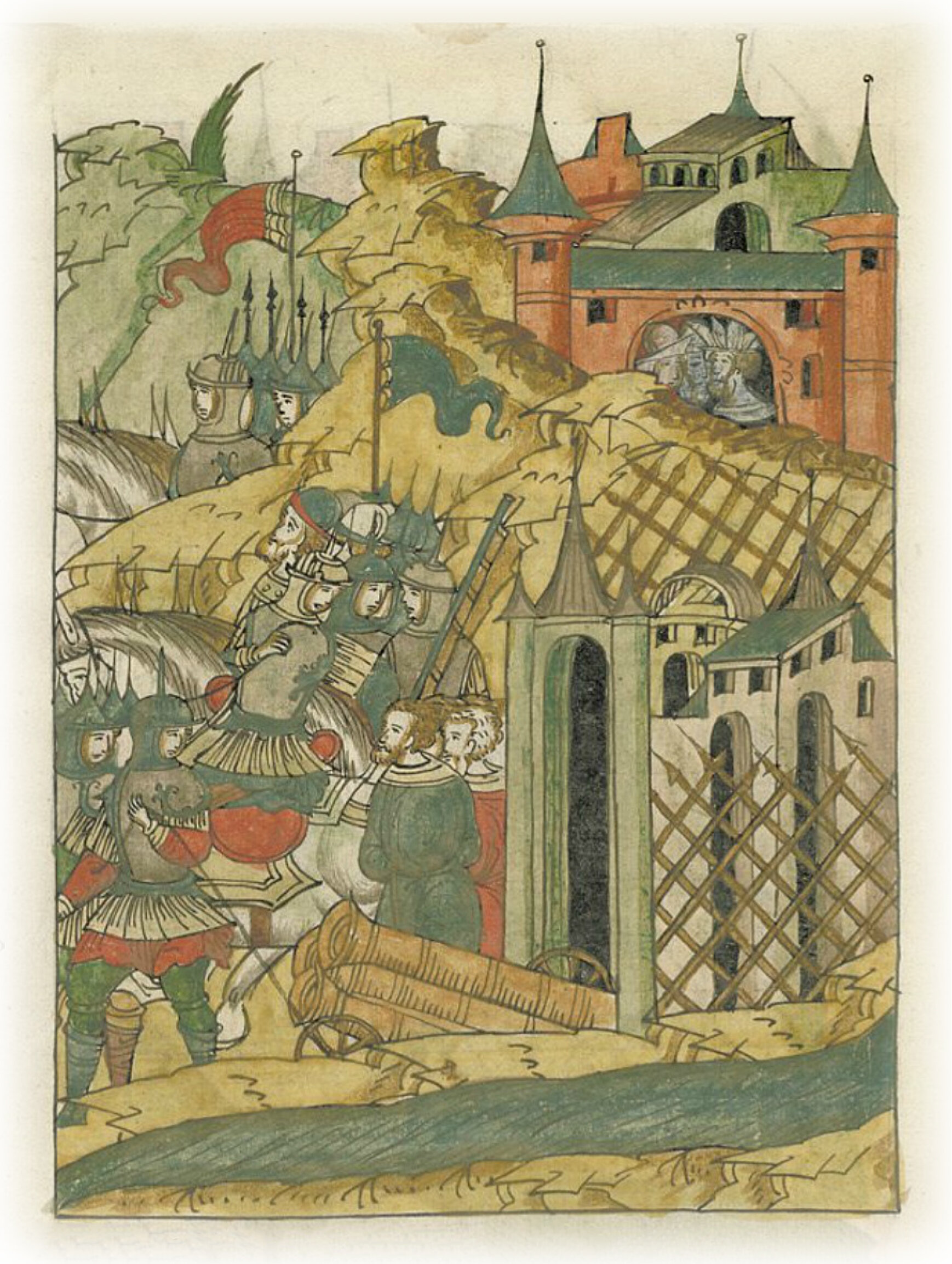 Языки говорят воеводам царя Ивана Васильевича, что магистр окопался большим рвом вокруг города Рындола, бьет из пушек и пищалей и приступает к Рындолу.
