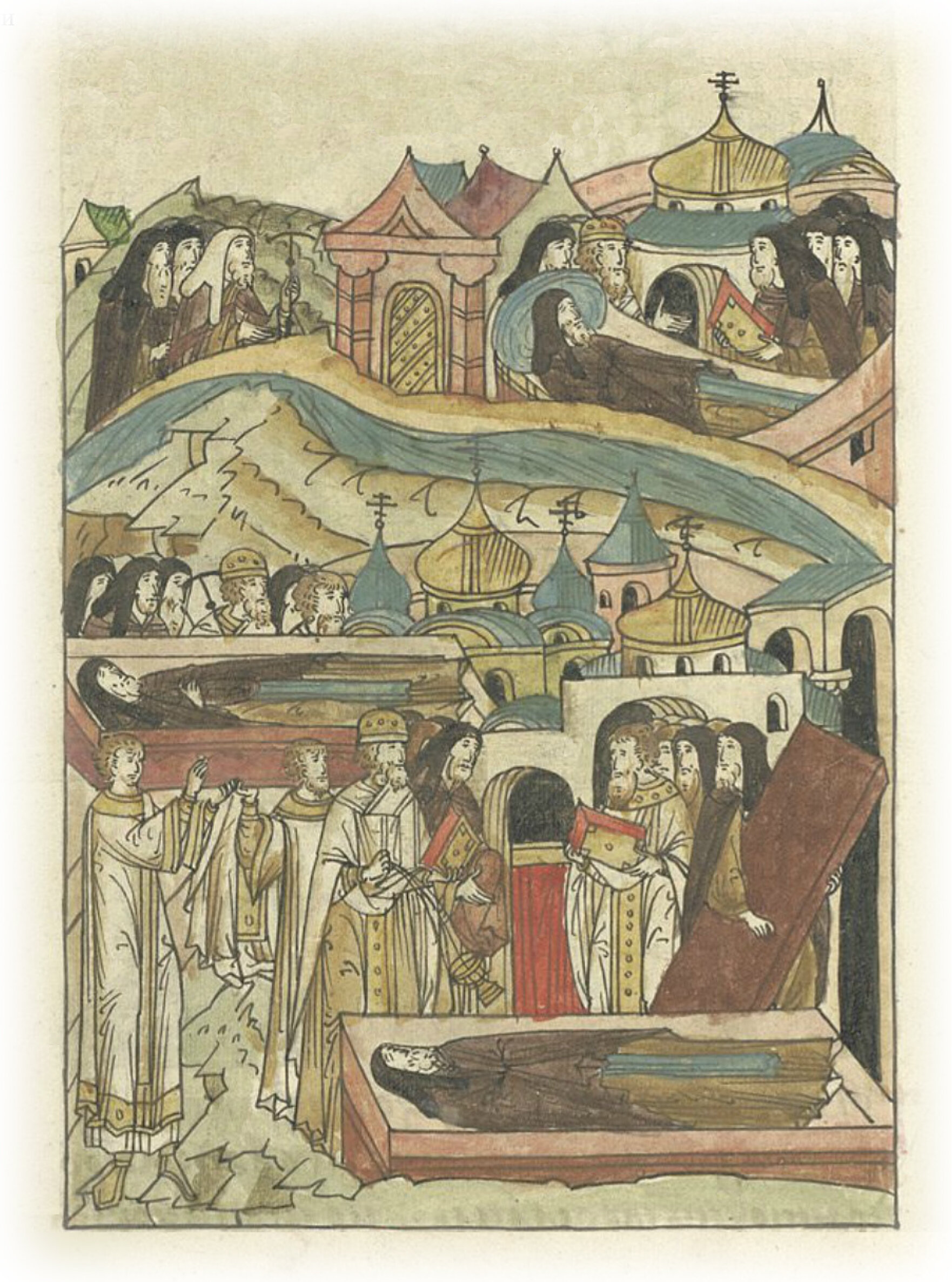 Кончина Тверского епископа Андрея и его похороны в церкви святого Введения святой Богородицы.