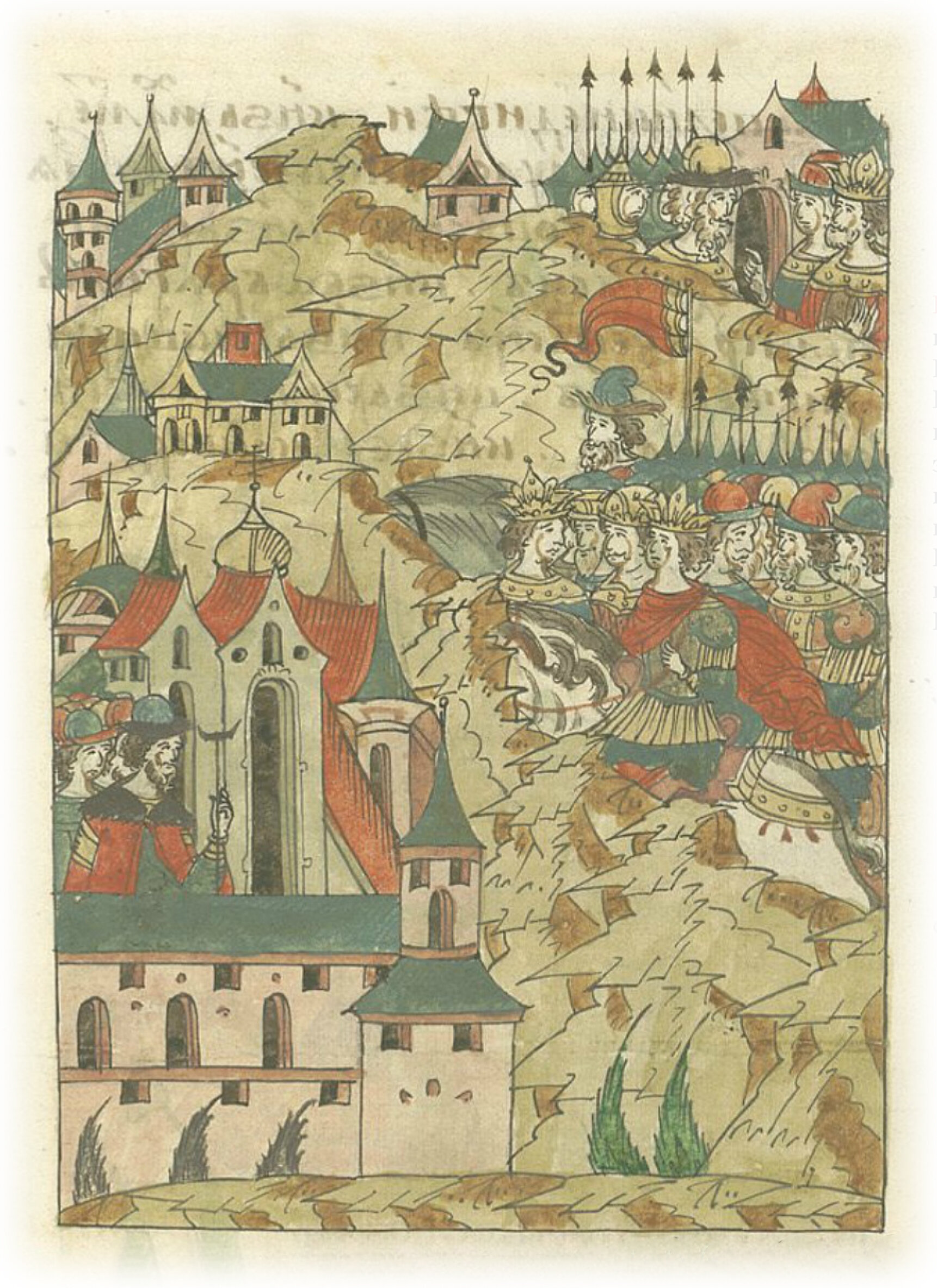 Языки говорят воеводам царя Ивана Васильевича, что магистр окопался большим рвом вокруг города Рындола, бьет из пушек и пищалей и приступает к Рындолу.
