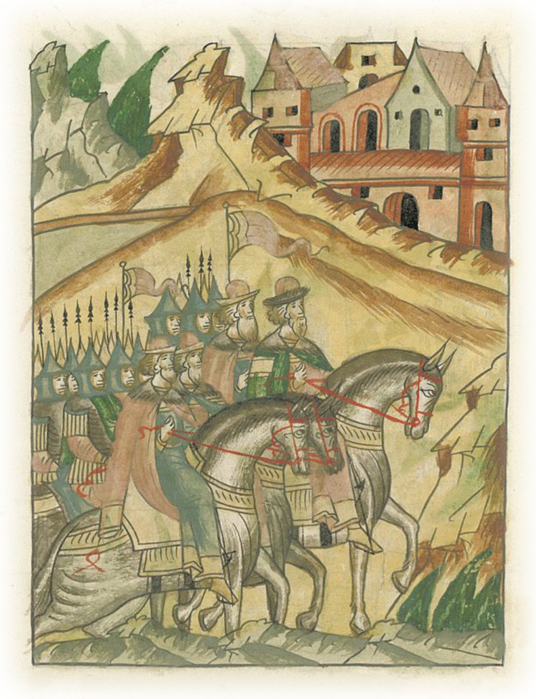 Языки говорят воеводам царя Ивана Васильевича, что магистр окопался большим рвом вокруг города Рындола, бьет из пушек и пищалей и приступает к Рындолу.