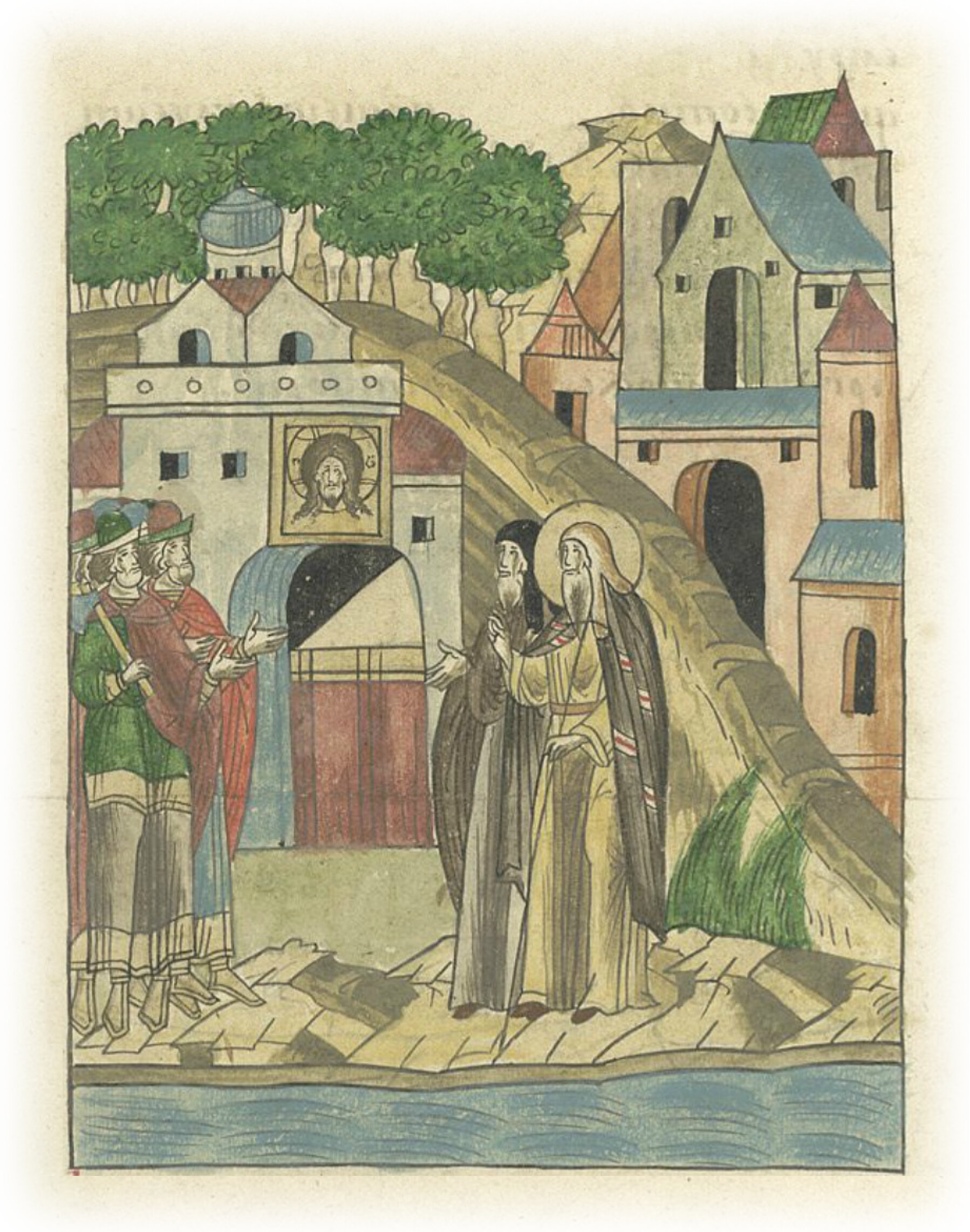 И нашел около Москвы на реке Яузе место, подходящее для постройки монастыря, и с помощью Господа Бога и Пресвятой Богородицы построил церковь во имя Нерукотворного образа Христова, а образ, который принес с собою из Царьграда, украсил золотом и бисером.