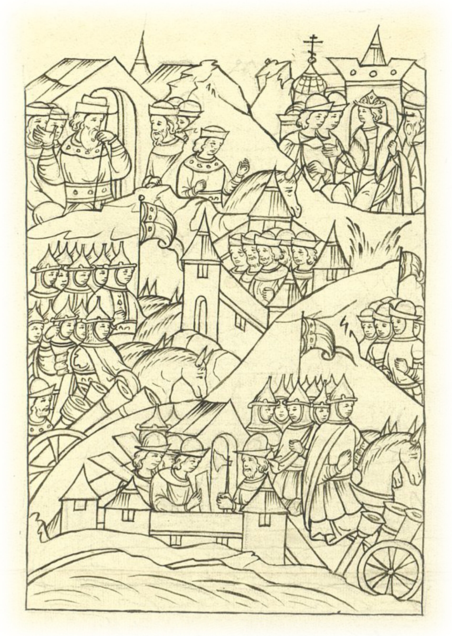 Король же Сигизмунд, услышав, что воеводы великого князя под Мстиславлем, а другие люди великого князя на его земле на озере Себеже город ставят,