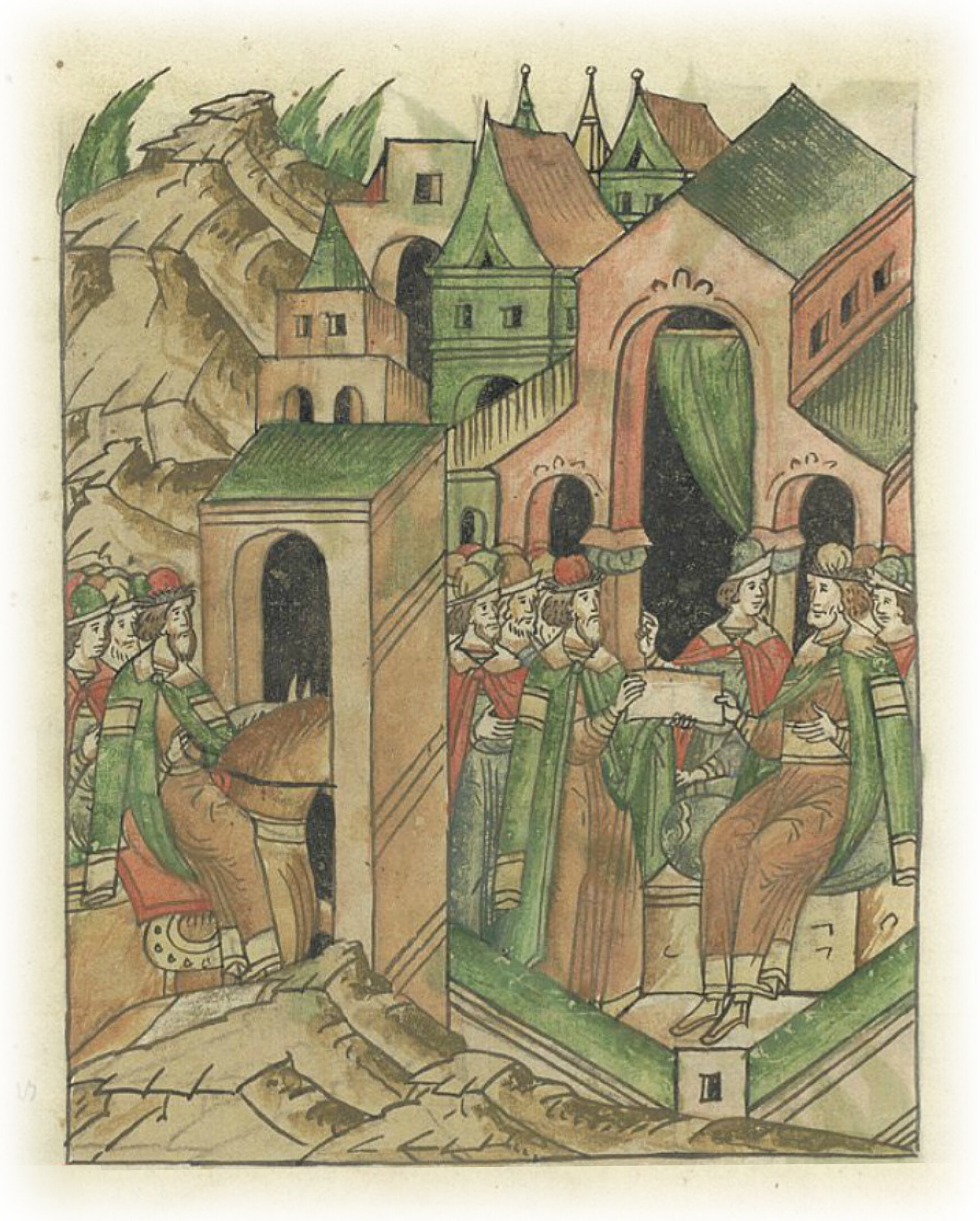 Ругодивские посадники Яким и Захар приезжают в Москву. Воеводы царя Ивана Васильевича Алексей Адашев и Иван Михайлов сообщают им, что государь пожалует их, если сдадут его воеводам помимо Ругодива Вышгород.