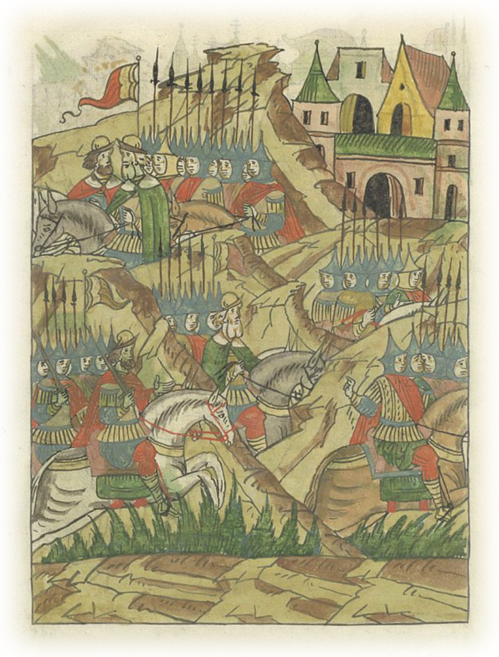 Воины великого князя Ивана Васильевича гонятся за новгородцами по двадцать верст и, устав, возвращаются.