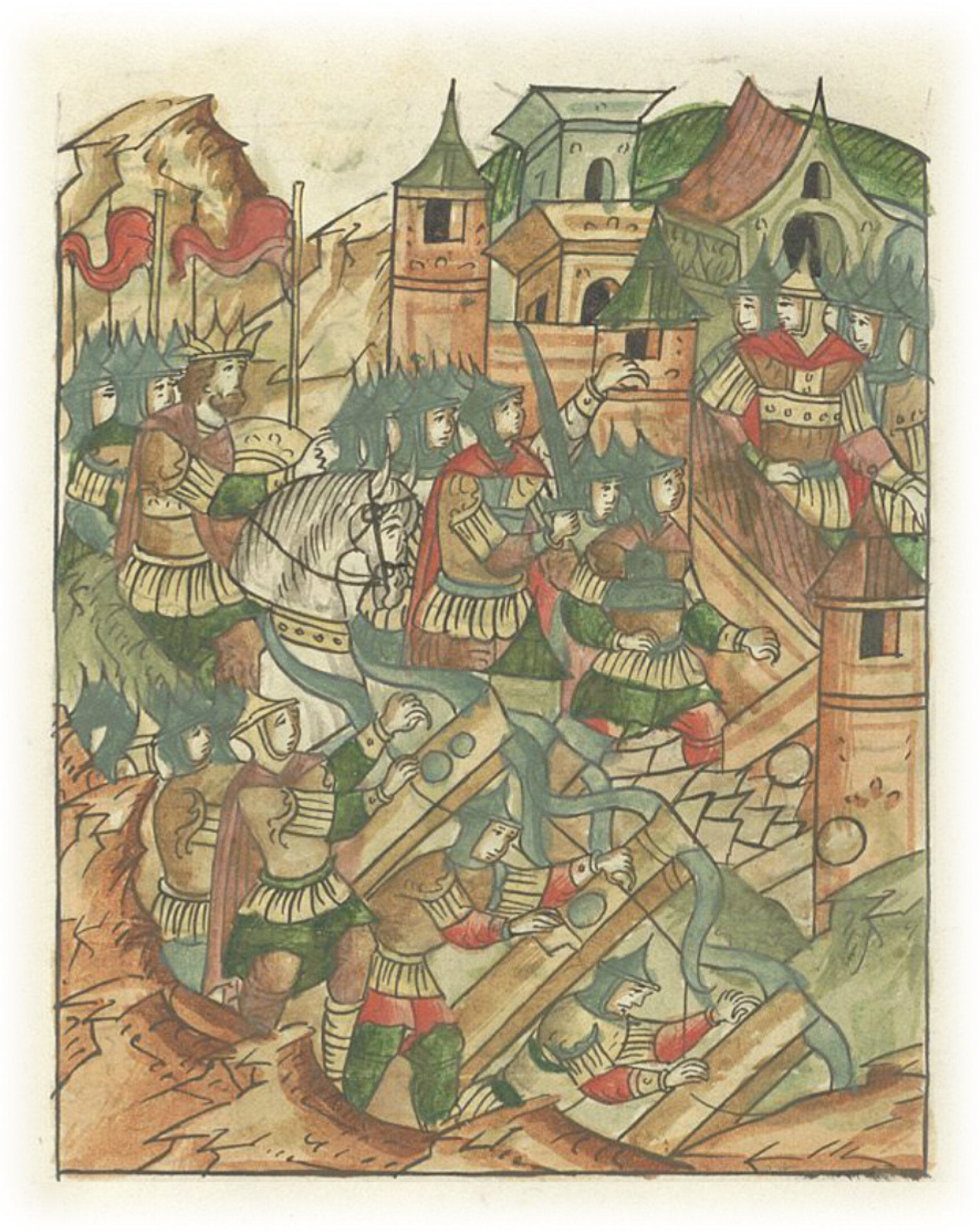 Батый сильно разгневался, в ярости повелел приступать к городу. И при помощи многих пороков выбили городские стены, и вошли в город,