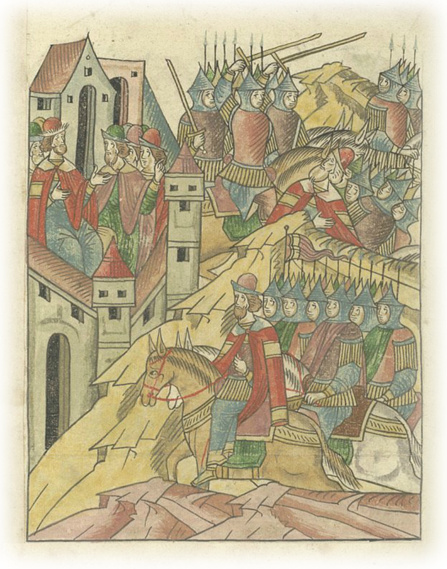 Языки говорят воеводам царя Ивана Васильевича, что магистр окопался большим рвом вокруг города Рындола, бьет из пушек и пищалей и приступает к Рындолу.