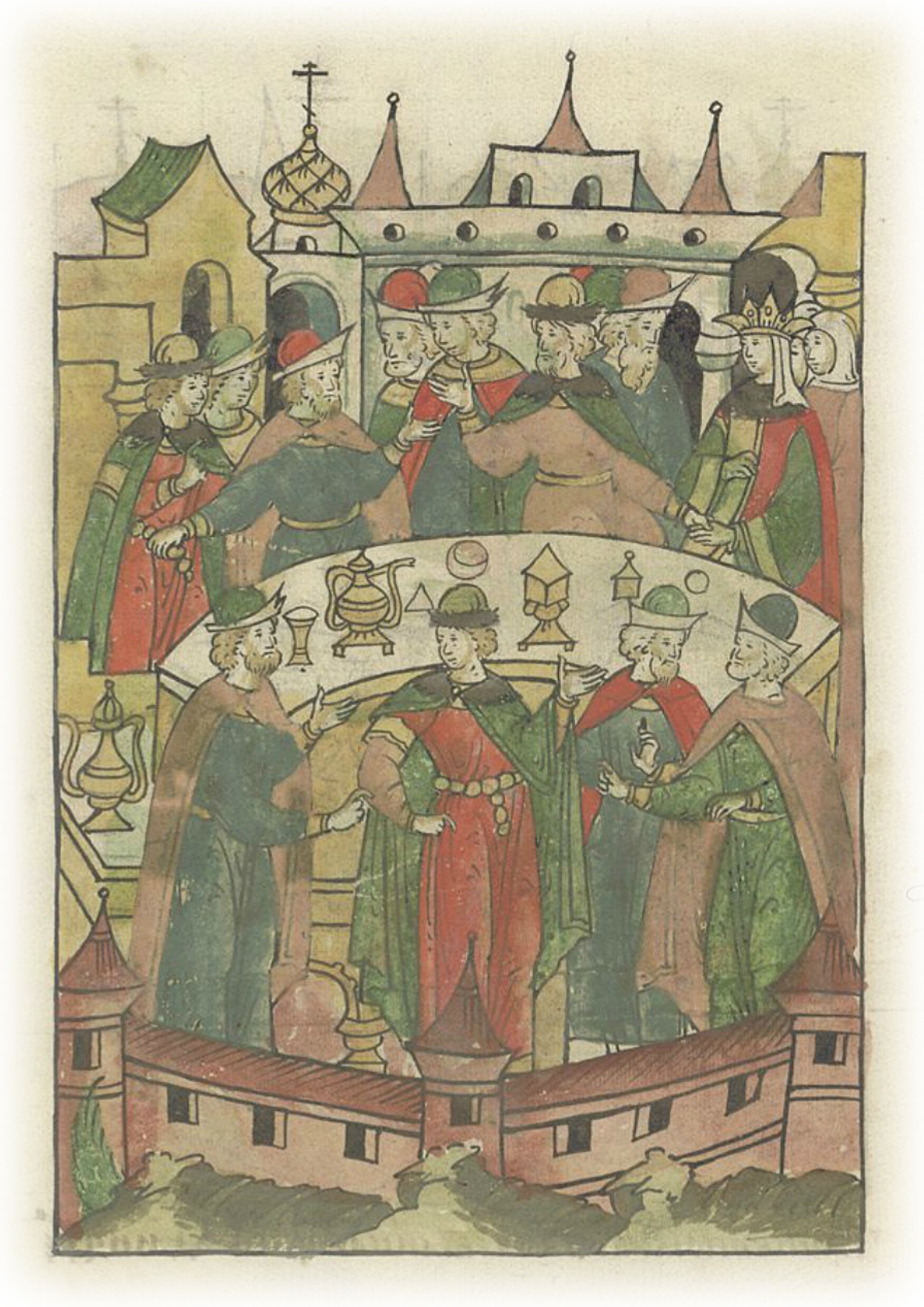 На свадьбе великого князя Василия Васильевича князь Петр Константинович узнает золотой пояс с драгоценными камнями на великом князе Василии, который был отдан великому князю Дмитрию Ивановичу князем Дмитрием Константиновичем Суздальским.