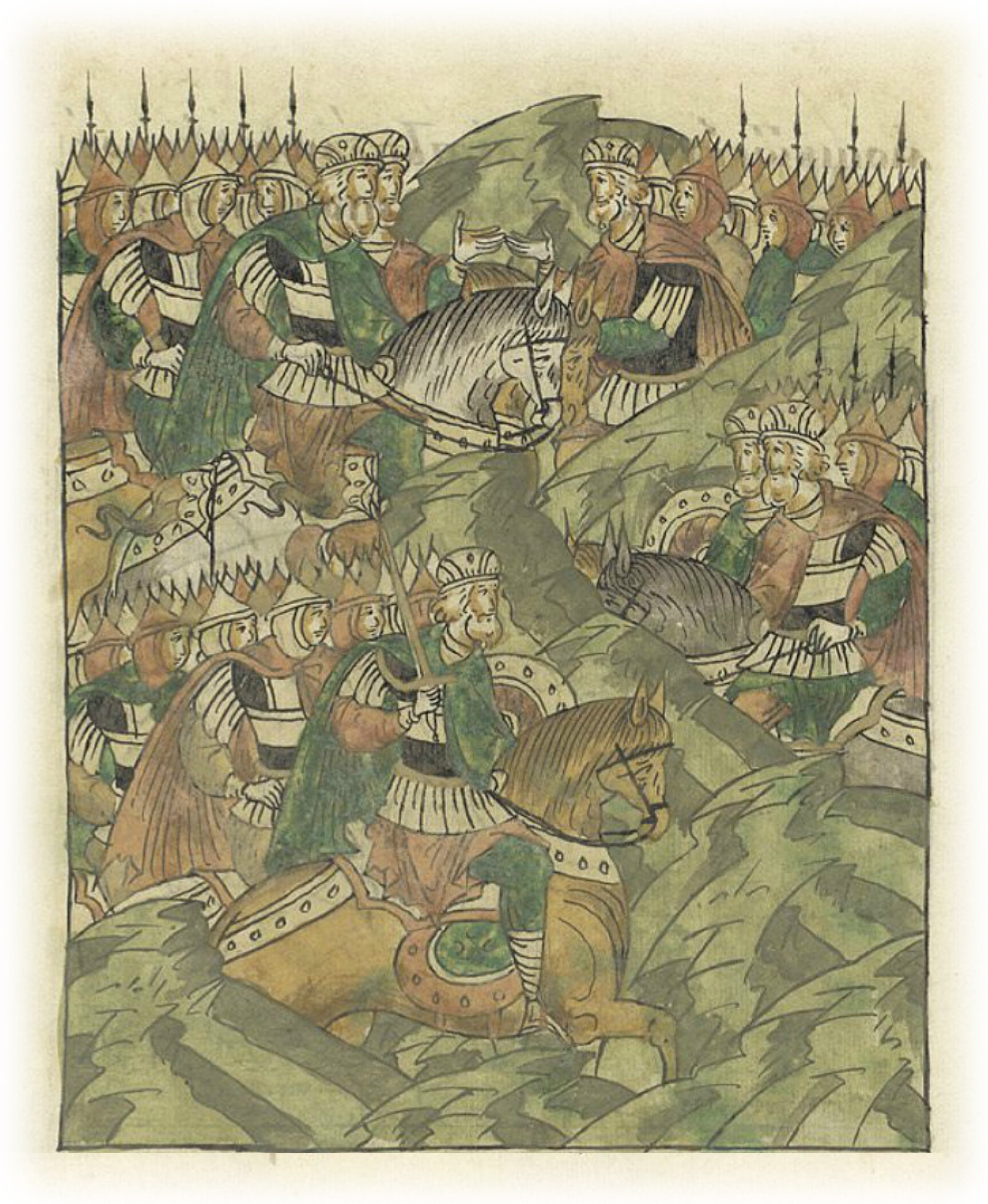 О побоище князя Ярослава Всеволодовича с князем Новгородским Мстиславом Мстиславичем у Липицы. Князья Константин Всеволодович, Мстислав Мстиславич, Владимир Смоленский и Всеволод Мстиславич вместе с пришедшим к ним на помощь из Ростова Владимиром Псковск