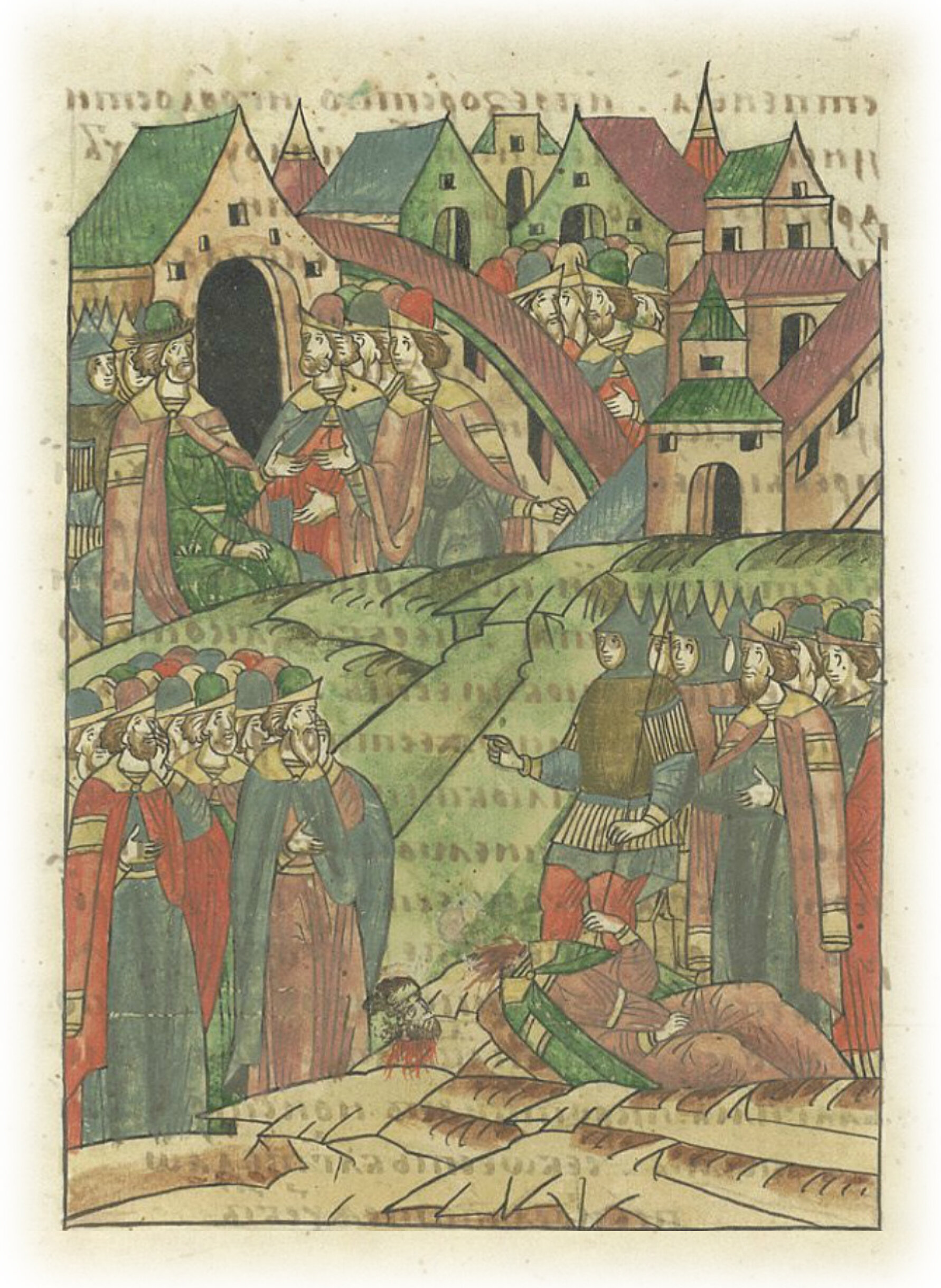 Люди печалятся об убийстве тысяцкого Ивана Васильевича.