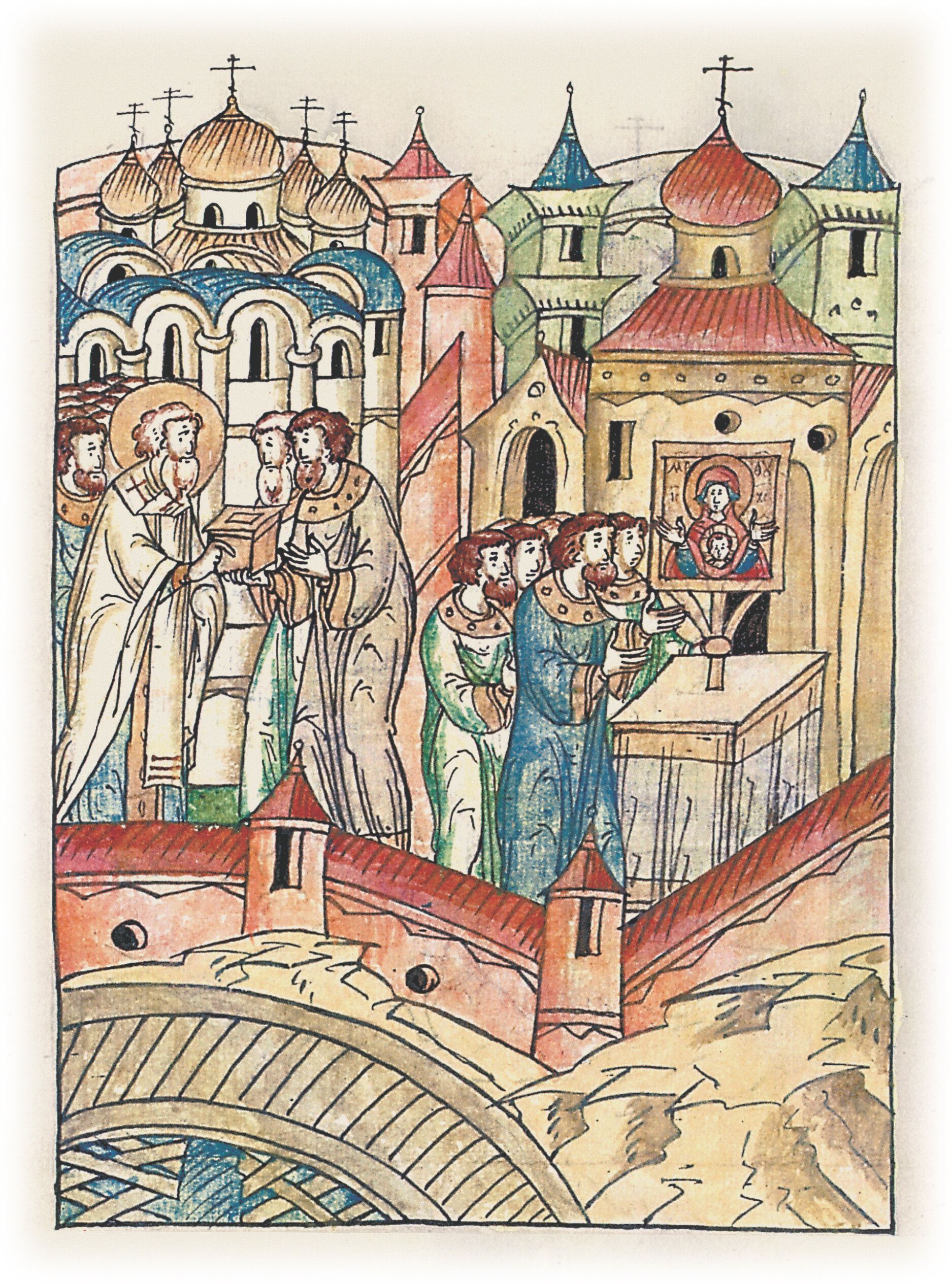 И послал архиепископ архидьякона своего с клириками святой Софии, и повелел принести на собор святую ту икону Богоматери. Архидьякон же вошел в церковь и поклонился перед иконой cвятой Богородицы, и хотел взять ее, и не сдвинулась икона с места своего;