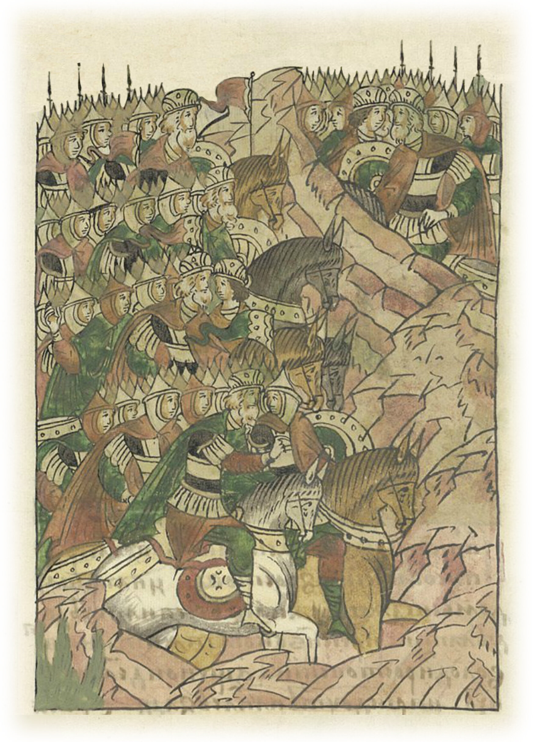 О побоище князя Ярослава Всеволодовича с князем Новгородским Мстиславом Мстиславичем у Липицы. Князья Владимир Рюрикович Смоленский, Мстислав Мстиславич Новгородский, Всеволод Мстиславич, Владимир Псковский и Константин Всеволодович Ростовский расставляю