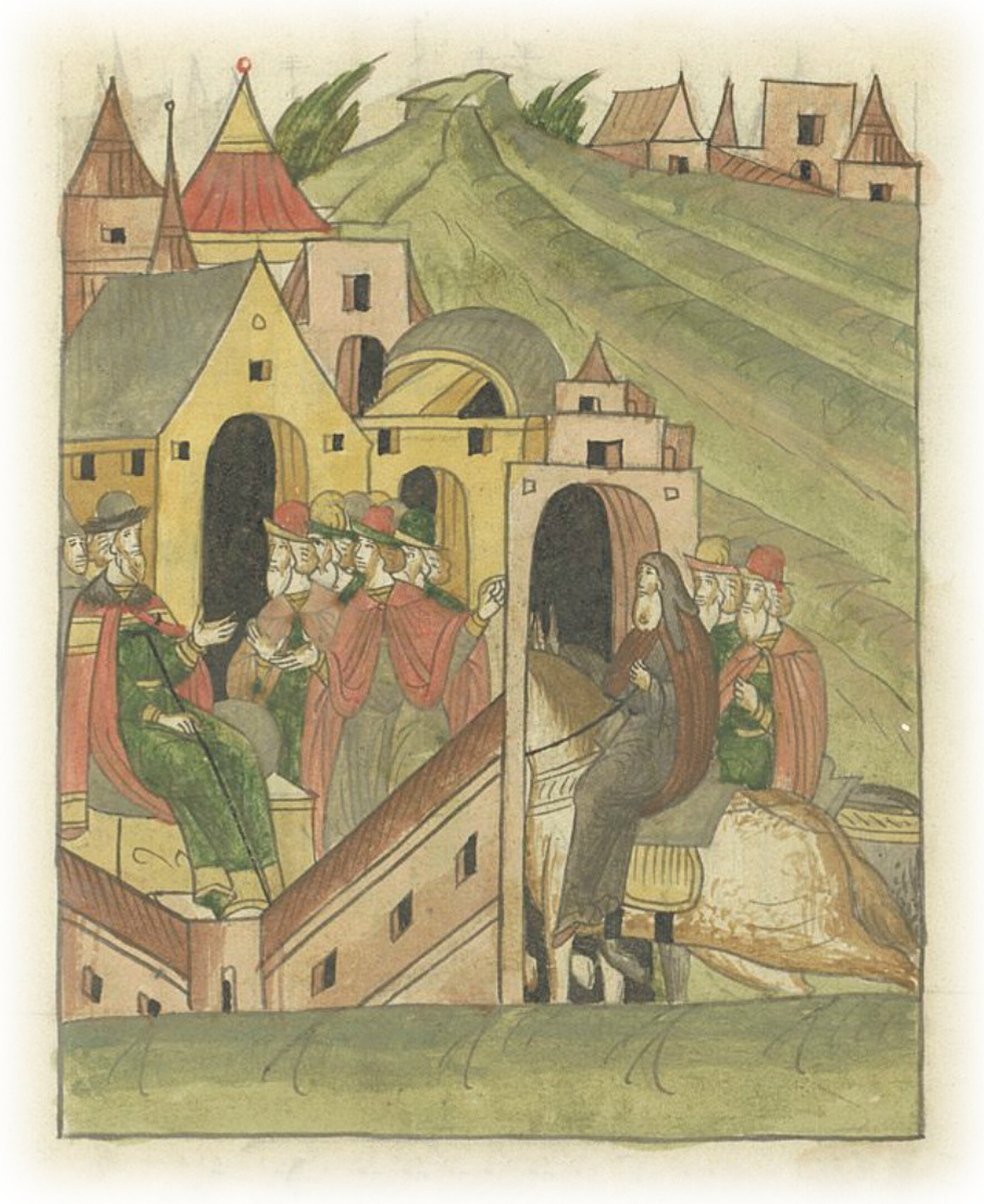Феофил с новгородскими посадниками приходит в Москву ставиться на архиепископию Великого Новгорода.