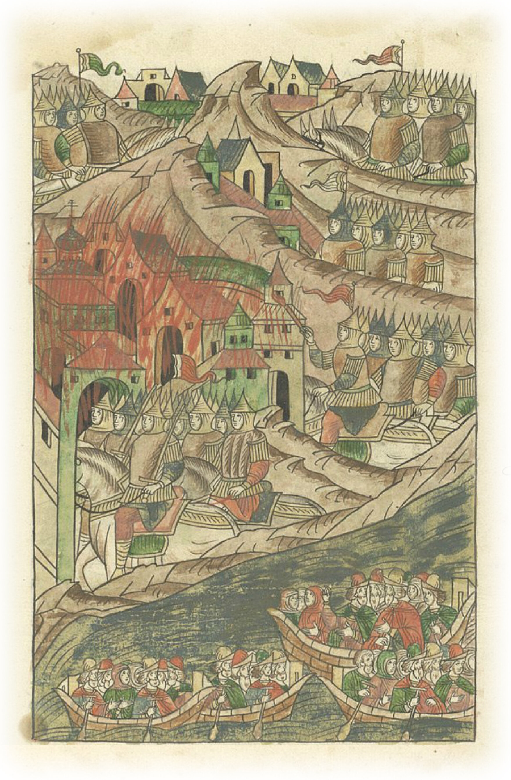 А иные ходили к Звенигороду, а некоторые к Можайску, а другие к Волоку, а еще иные к Переяславлю; и взяли его, и огнем пожгли, а горожане убежали на озеро в судах и там пережидали, а город бросили.