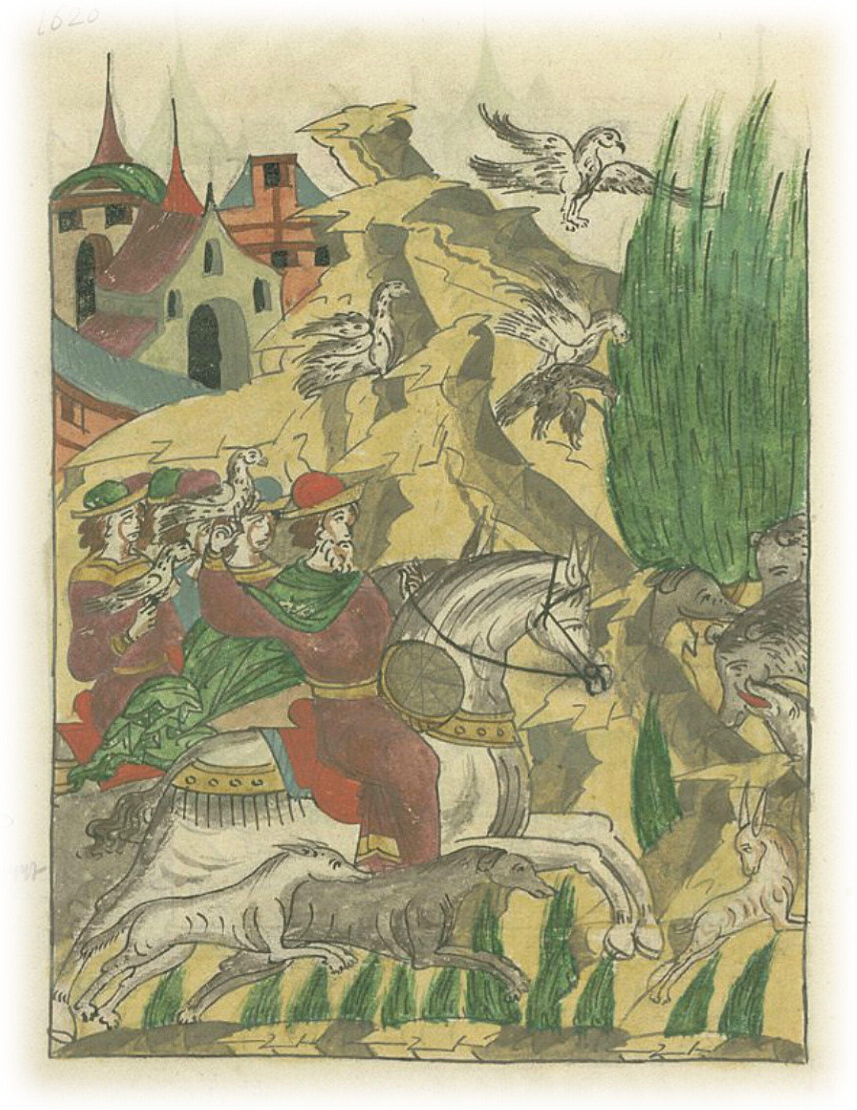 И ездил на охоту с ястребами, соколами и кречетами. Имел много псов, медведей и этим тешил себя.