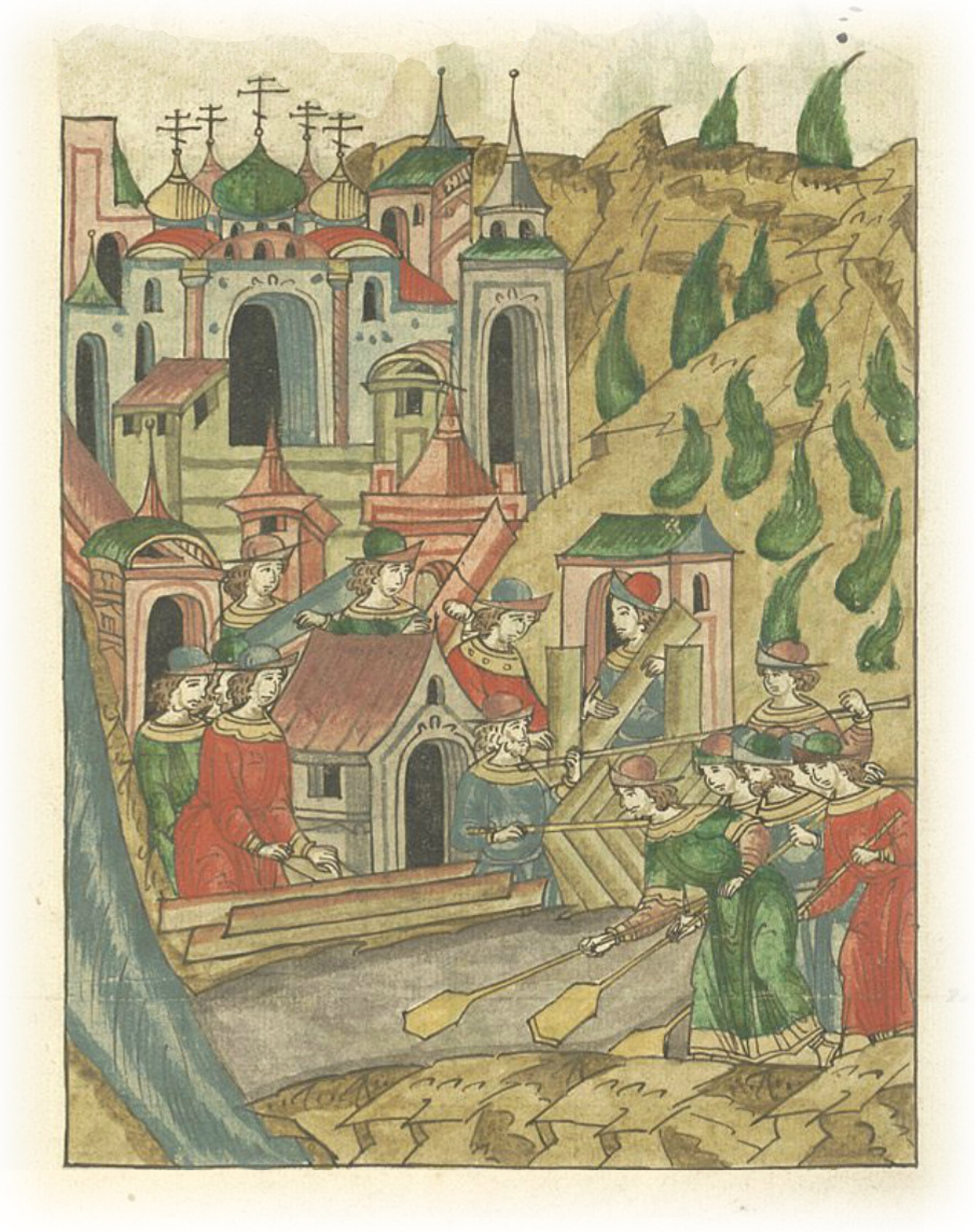 В том же году замыслили на Москве копать ров от Кучкова поля до Москвы реки, и от этого был людям большой убыток, хоромы разрушили, и хотя много трудились, но (в срок) не успели.