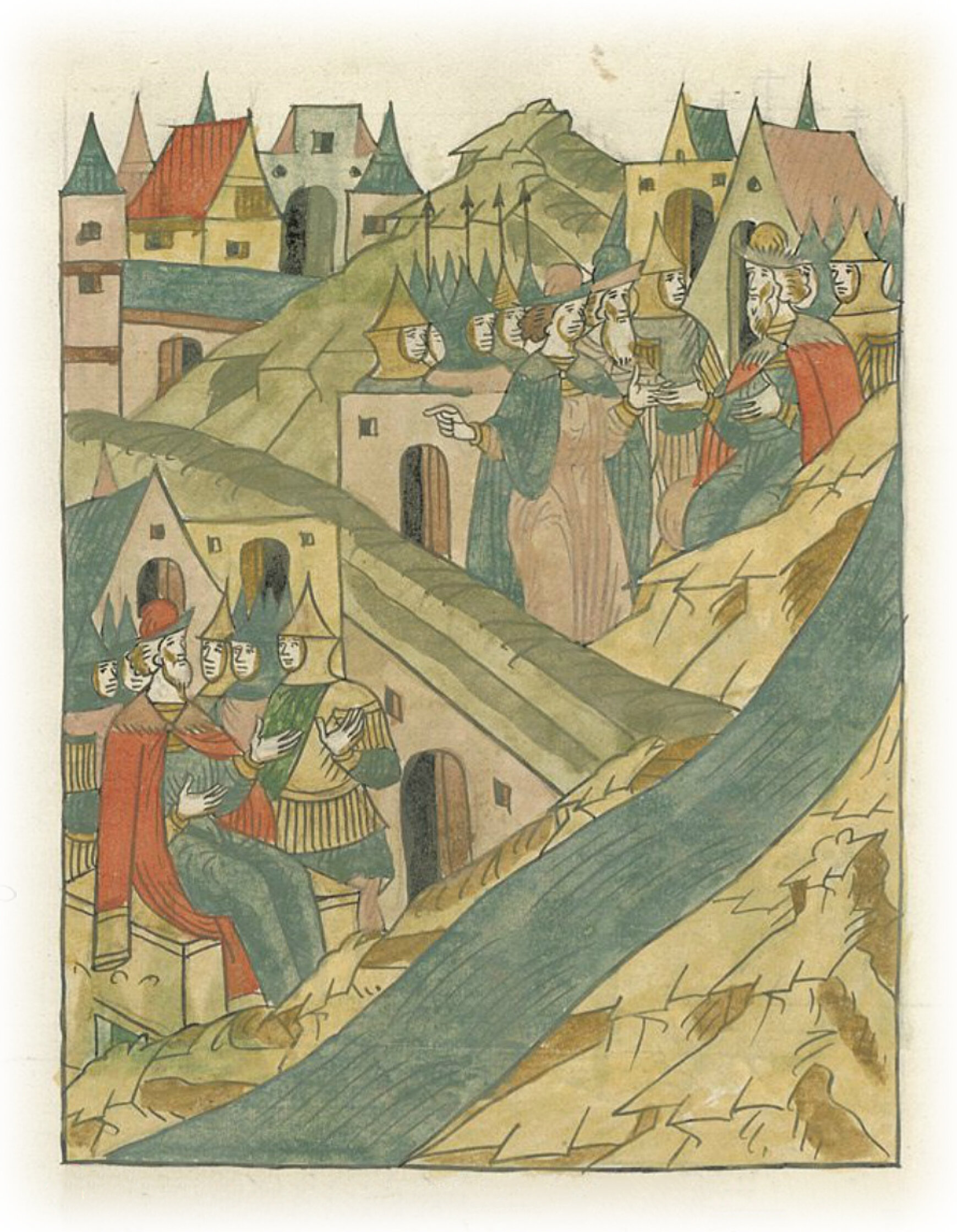 Ругодивские посадники Яким и Захар приезжают в Москву. Воеводы царя Ивана Васильевича Алексей Адашев и Иван Михайлов сообщают им, что государь пожалует их, если сдадут его воеводам помимо Ругодива Вышгород.