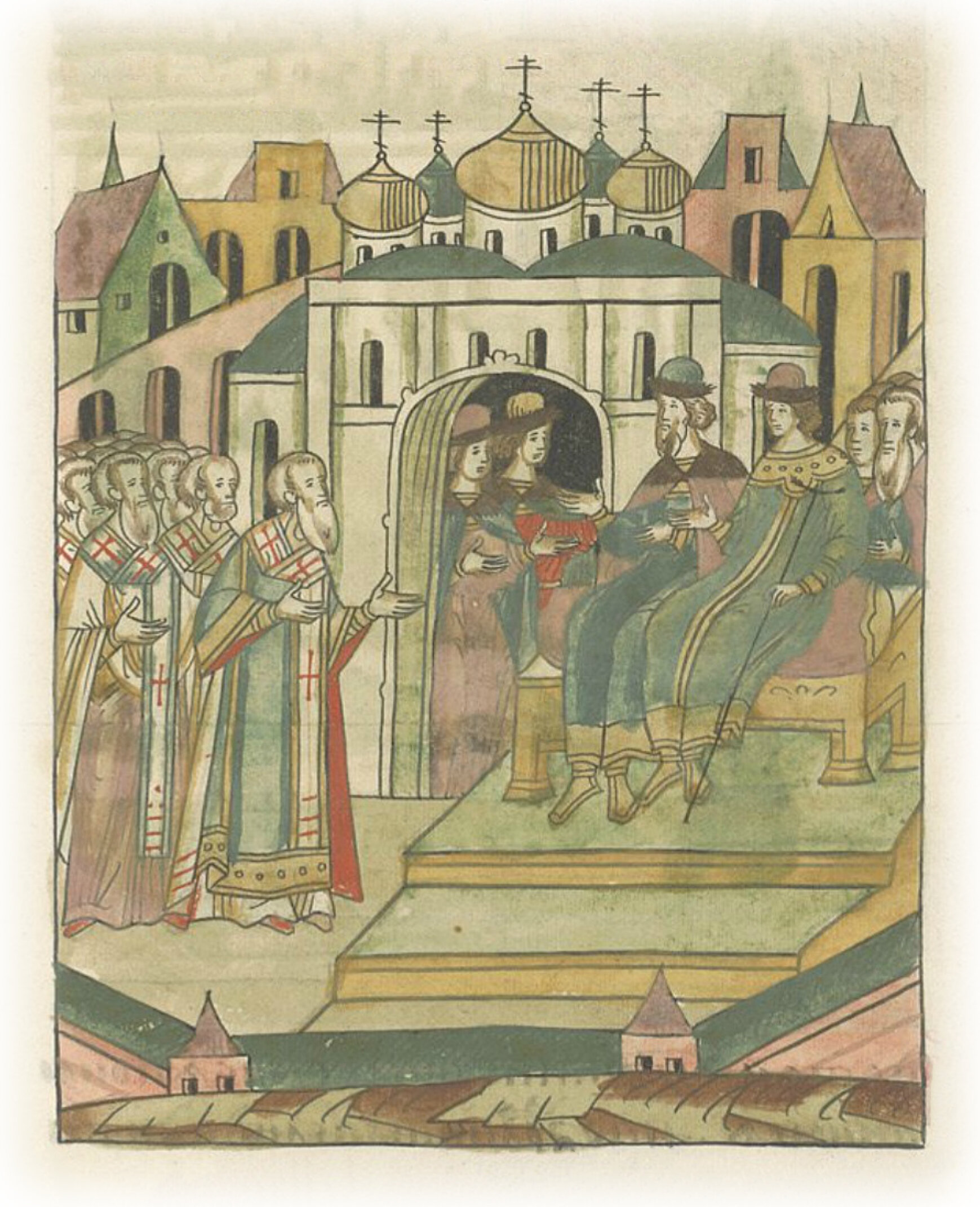И потом сказал митрополит великому князю Дмитрию: «Божьею милостью здравствуй, господин и сын великий князь Дмитрий Иванович всея Руси со своим государем и дедом великим князем Иваном Васильевичем, всея Руси самодержцем, на много лет».