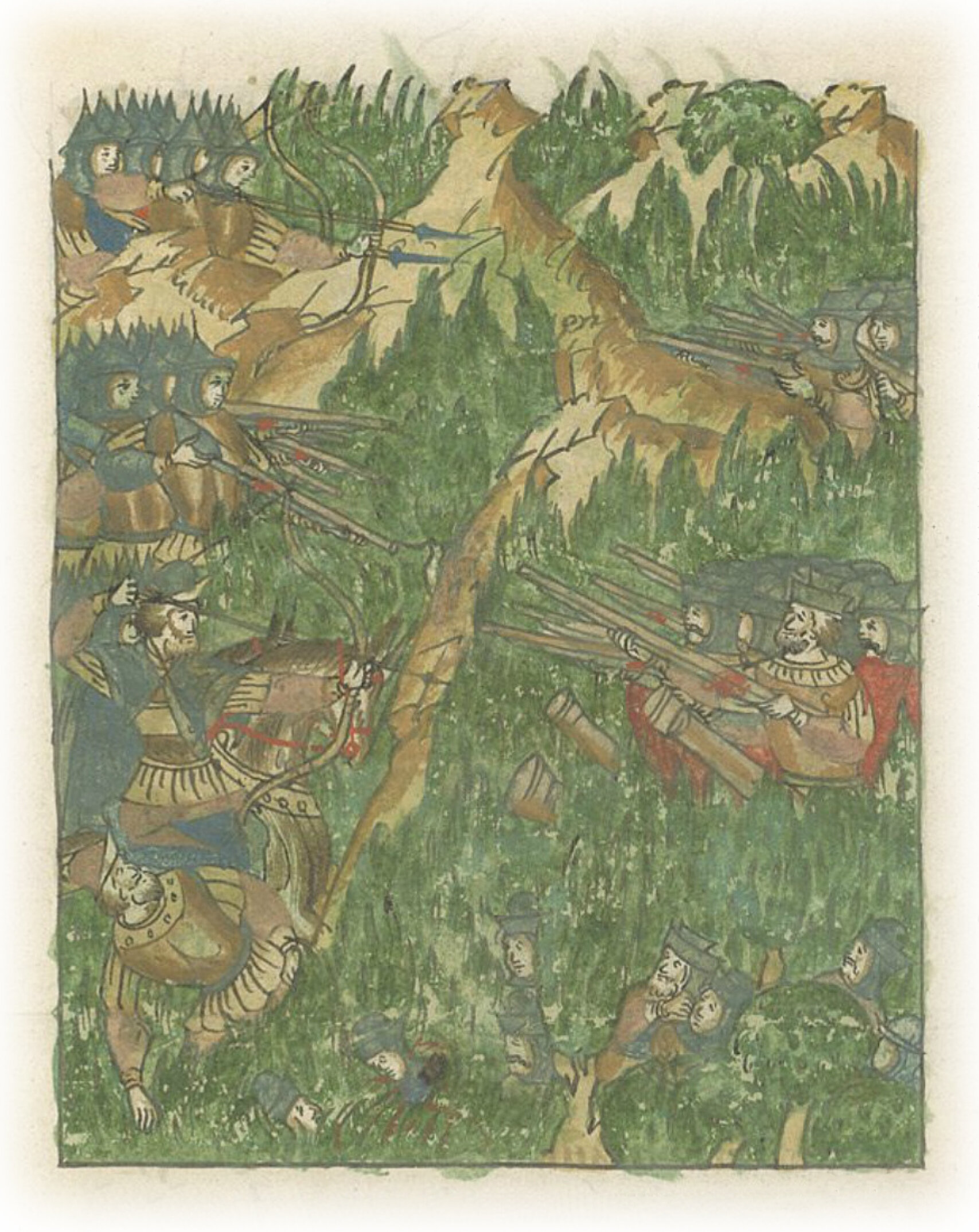 С воеводами короля было много жолнеров с пищалями, а место было тесное, и они били из лесов людей великого князя, и убили из пушки в передовом полку воеводу князя Ивана Ивановича Темку Ростовского; и у них побили многих людей и воевод польских и литовских, и панских детей и княжат.