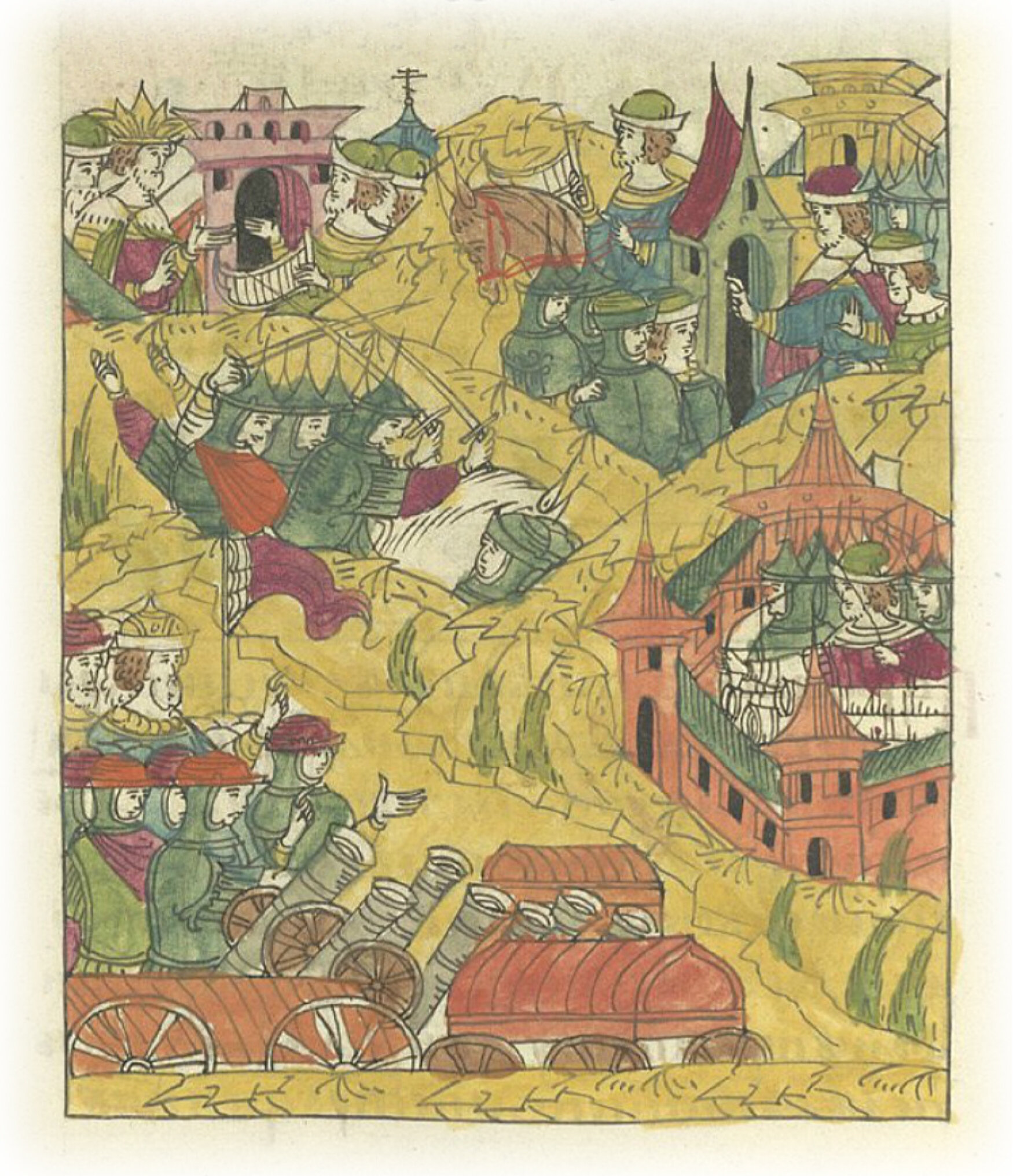 Языки говорят воеводам царя Ивана Васильевича, что магистр окопался большим рвом вокруг города Рындола, бьет из пушек и пищалей и приступает к Рындолу.