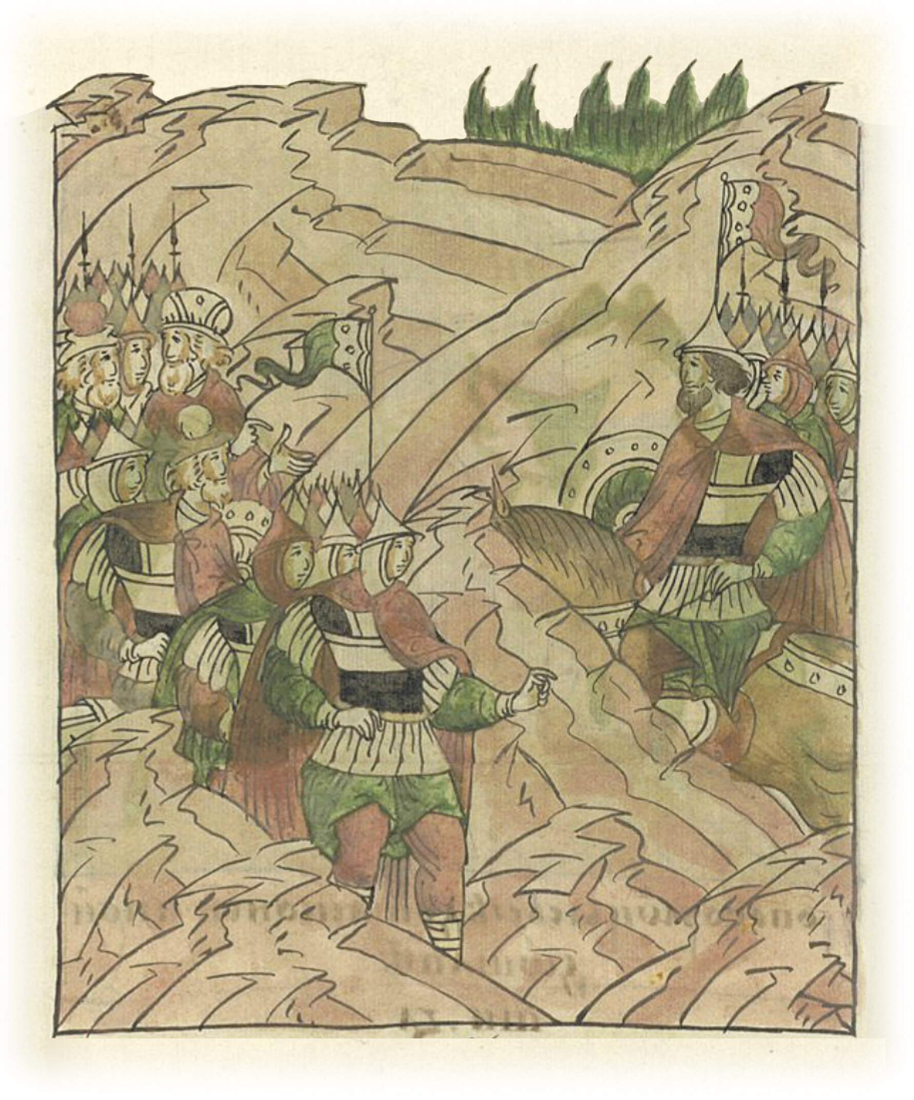 Новгородцы же ответили ему: «Мы, господин князь, которые на конях – те на конях, а которые пешие – те пешие, все готовы со всем сердцем и со всею твердостью». И пошли пешие, а с ними отрядили воеводу князя Владимира Ивора и многих иных,