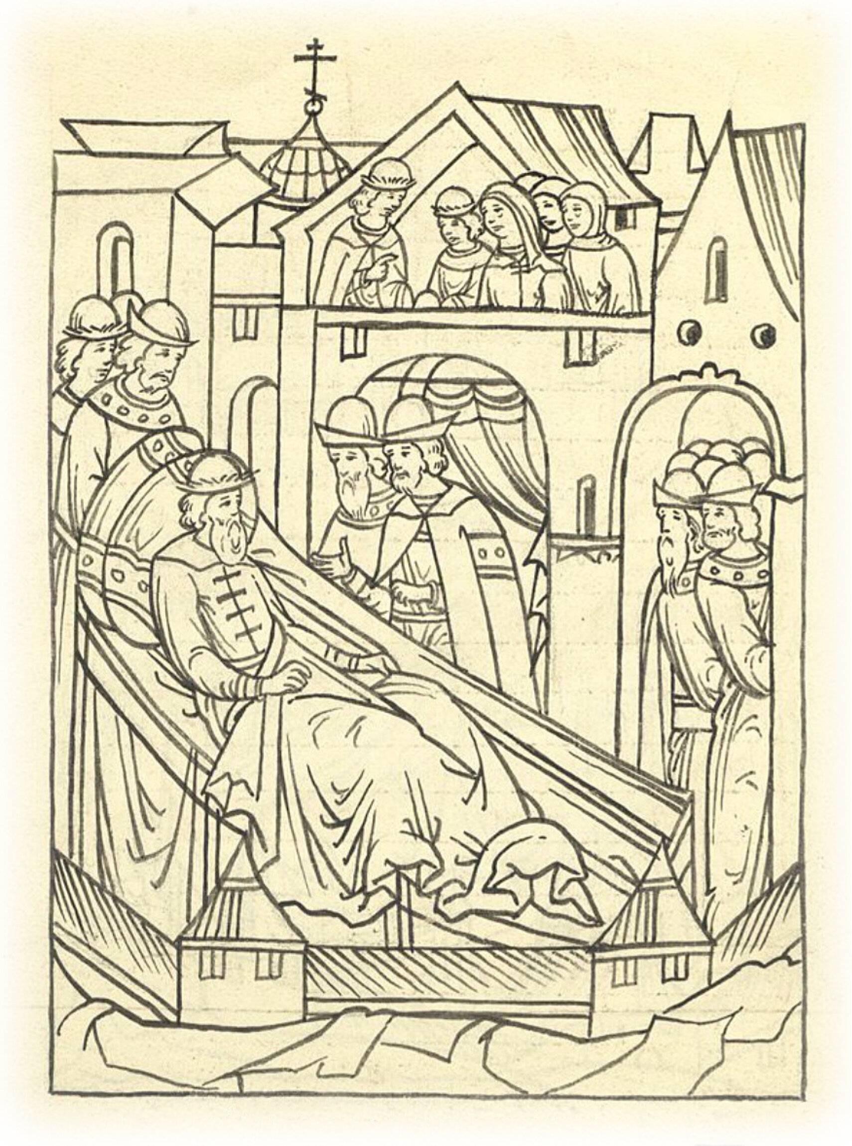 И приказал им о своей великой княгине Елене, как ей без него быть и как к ней боярам ходить, и обо всем им приказал, как без него царству строиться.