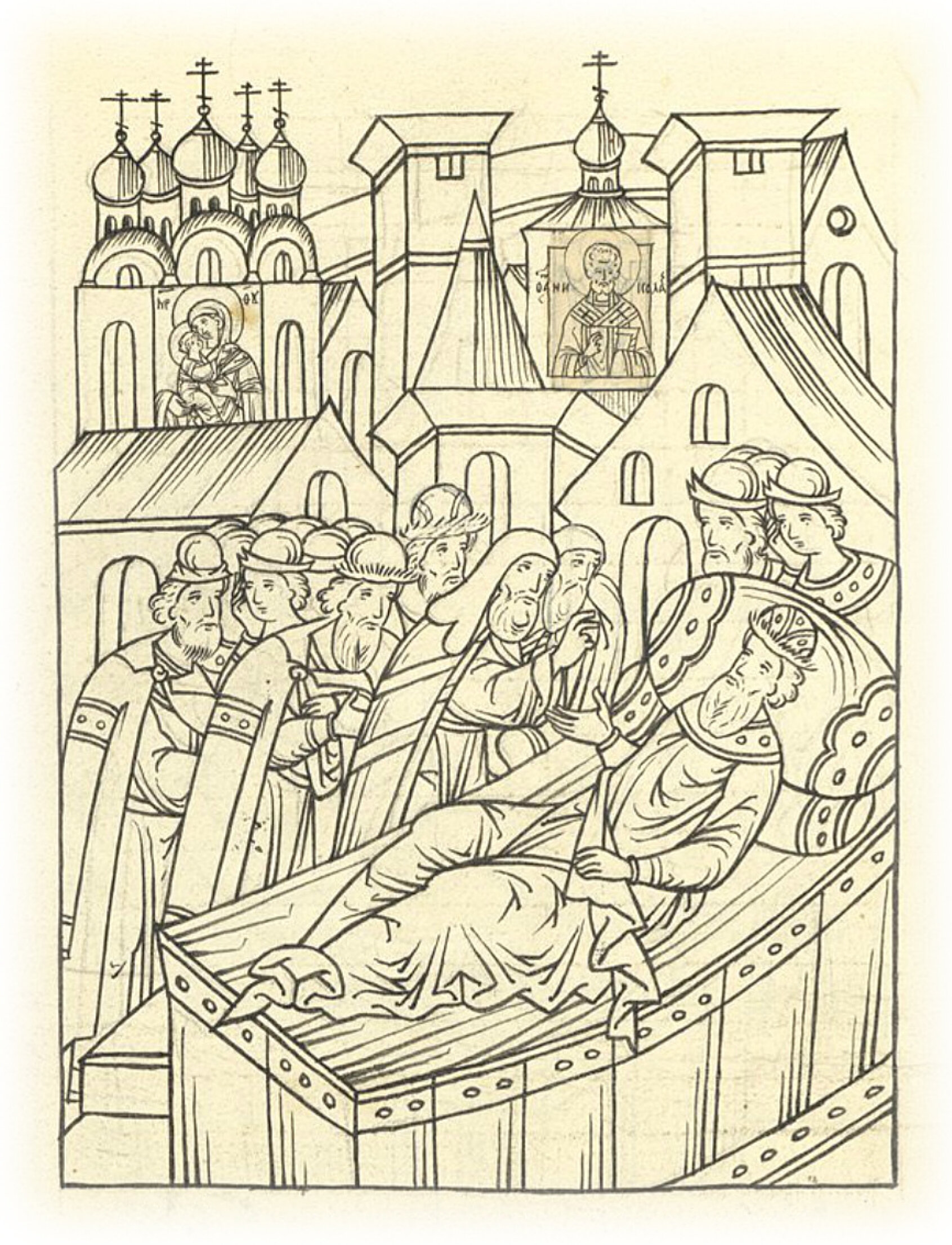 Пришли же к нему Даниил митрополит и братья его князь Юрий и князь Андрей, и бояре все, и дети боярские; и начали ему говорить митрополит и владыка Вассиан, чтобы государь князь великий послал за большим образом Пречистой Богородицы Владимирской, за чудотворной, которую Лука евангелист написал, да за иконой Николая чудотворца Гостунского.