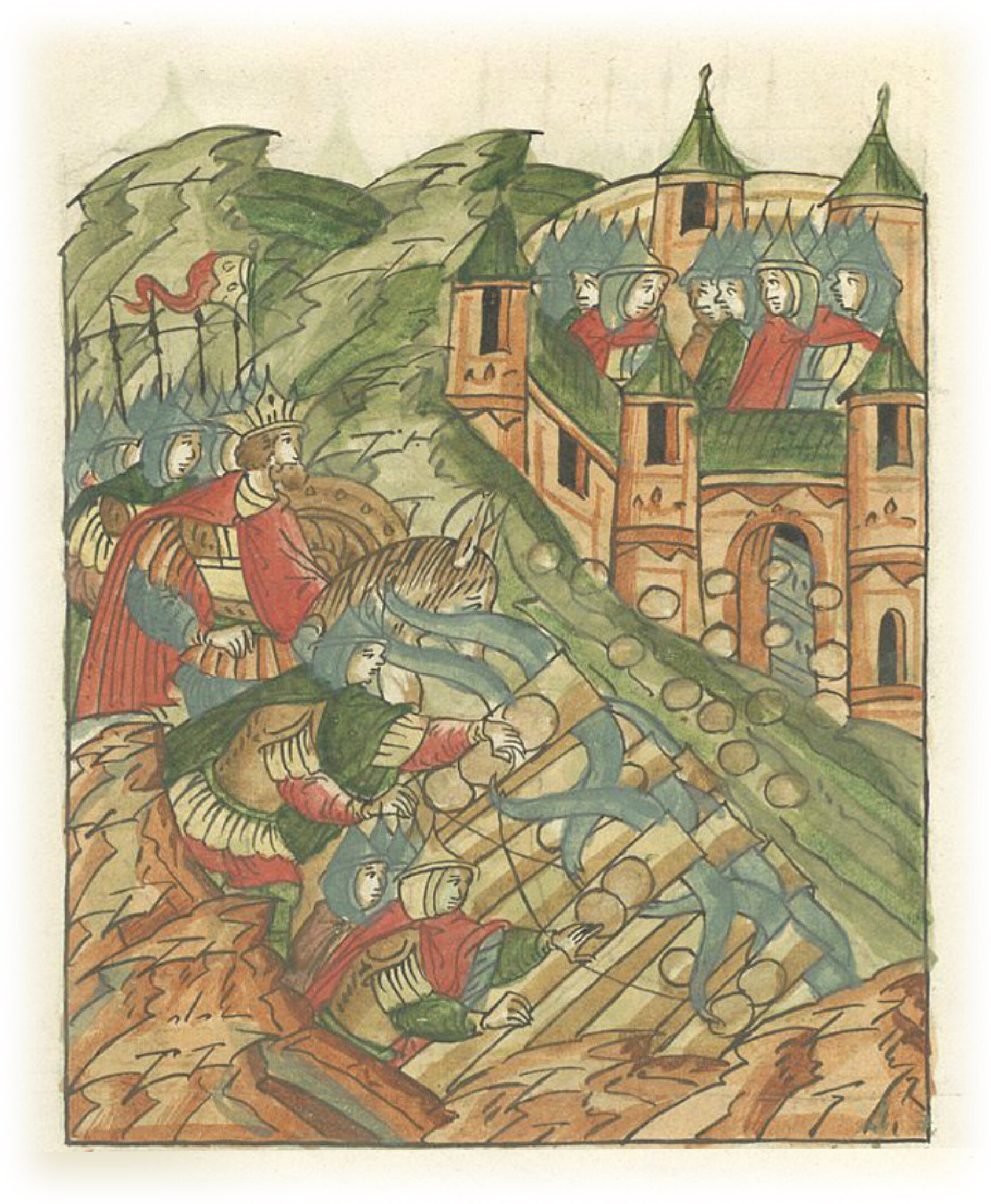 и пришел к городу Колодяжный, и установил 12 пороков*, но не смог разбить городских стен. * метательные и стенобитные орудия.
