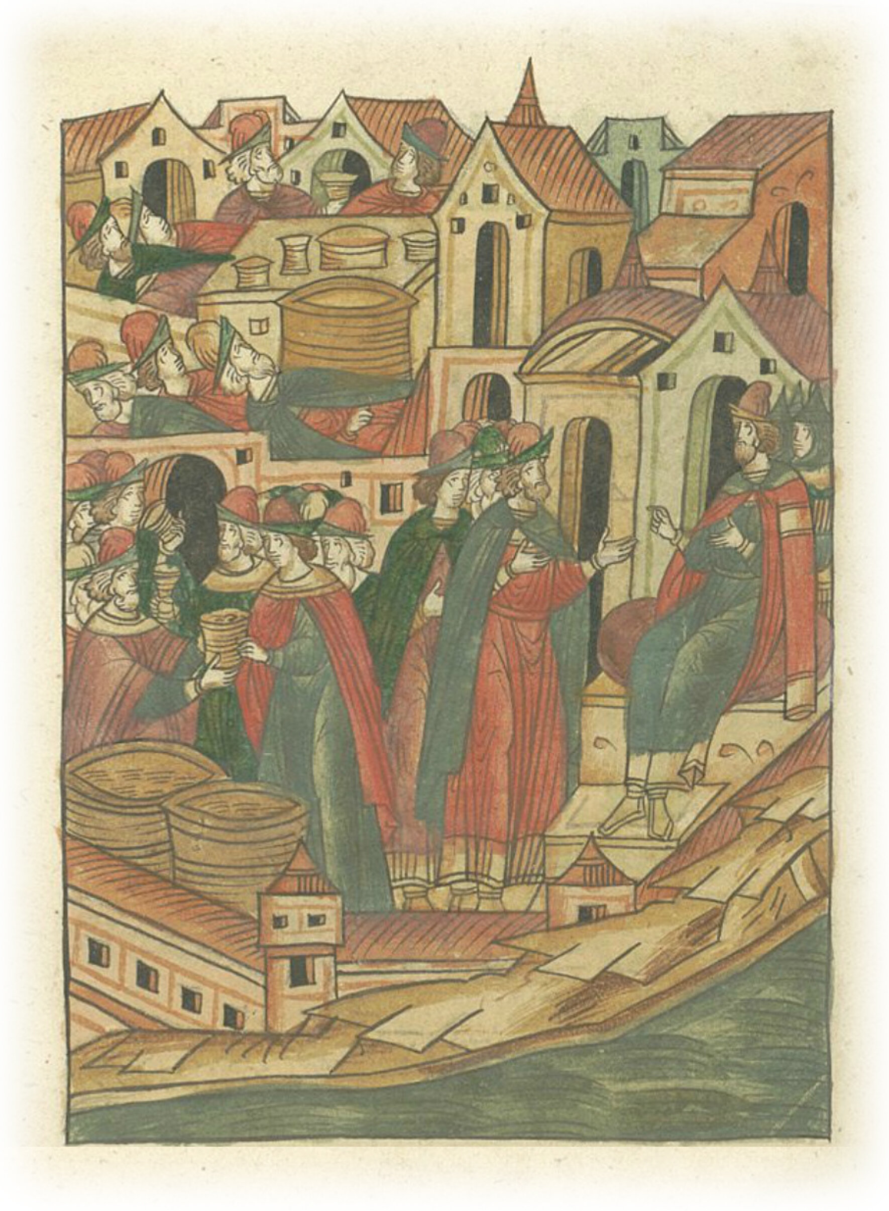 Ругодивские посадники Яким и Захар приезжают в Москву. Воеводы царя Ивана Васильевича Алексей Адашев и Иван Михайлов сообщают им, что государь пожалует их, если сдадут его воеводам помимо Ругодива Вышгород.