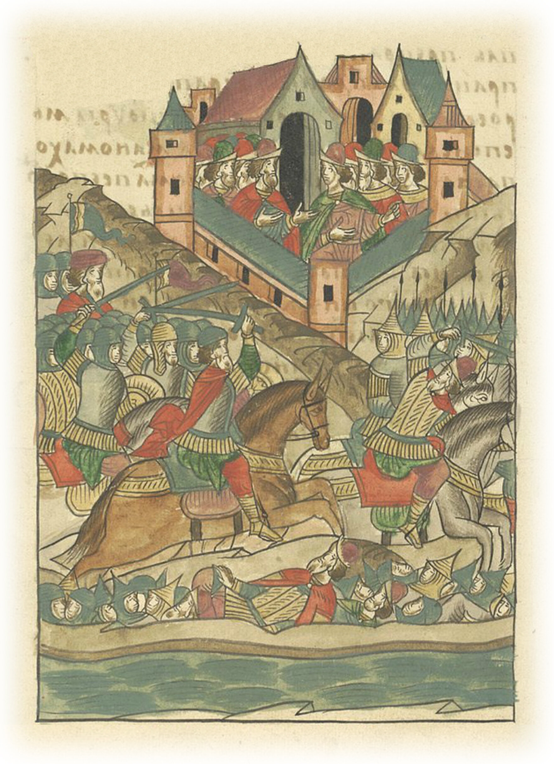 И после того князья Олгердовичи одолели, а смольняне побиты были, а иные побежали. И тут убит был на Суиме князь великий Святослав Иванович Смоленский, внук Александров, правнук Глебов Ростиславича, праправнук Ростиславль, препраправнук Мстиславль, (потомок) пращура Давида, прапращура Ростислава, препрапращура Мстислава, Владимира Мономахова сына, а Владимир Мономах – Всеволодов сын, а Всеволод – Ярославов сын, а Ярослав – великого князя Владимира сын. И тут убили племянника его князя Ивана Васильевича, внука Иванова, правнука Александрова.