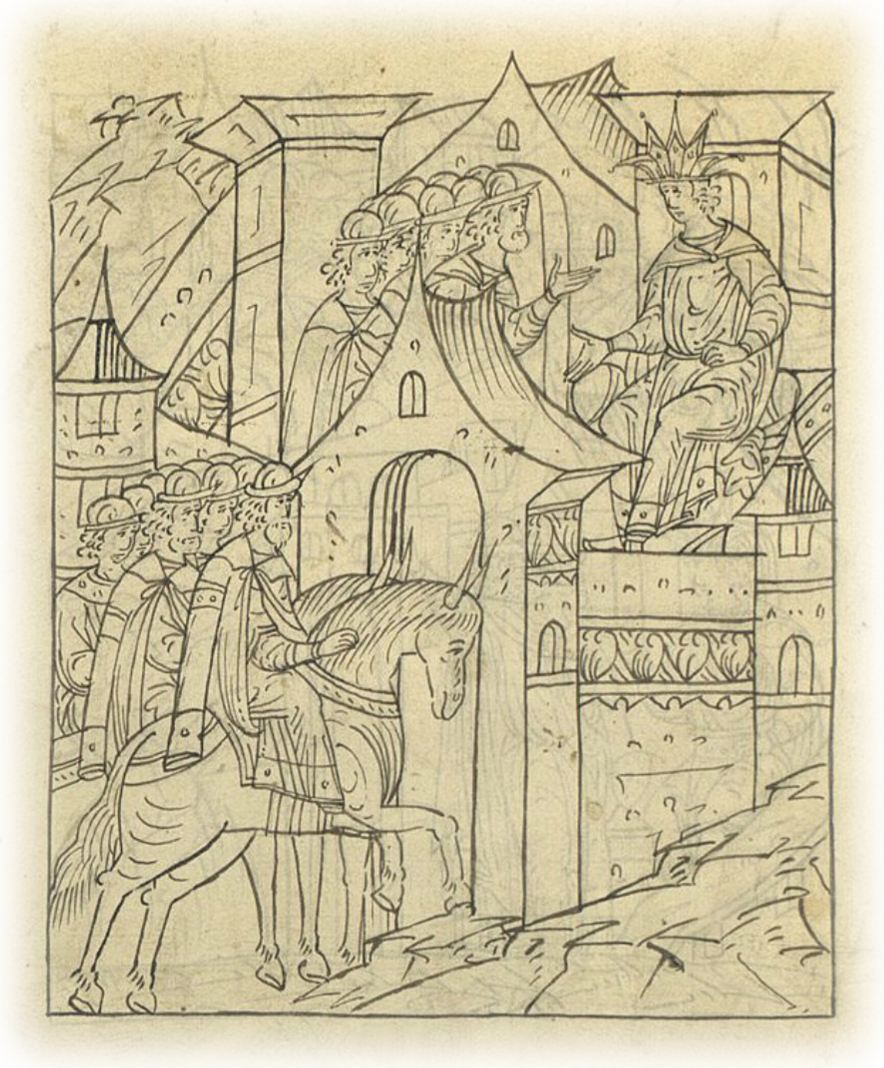 Ругодивские посадники Яким и Захар приезжают в Москву. Воеводы царя Ивана Васильевича Алексей Адашев и Иван Михайлов сообщают им, что государь пожалует их, если сдадут его воеводам помимо Ругодива Вышгород.