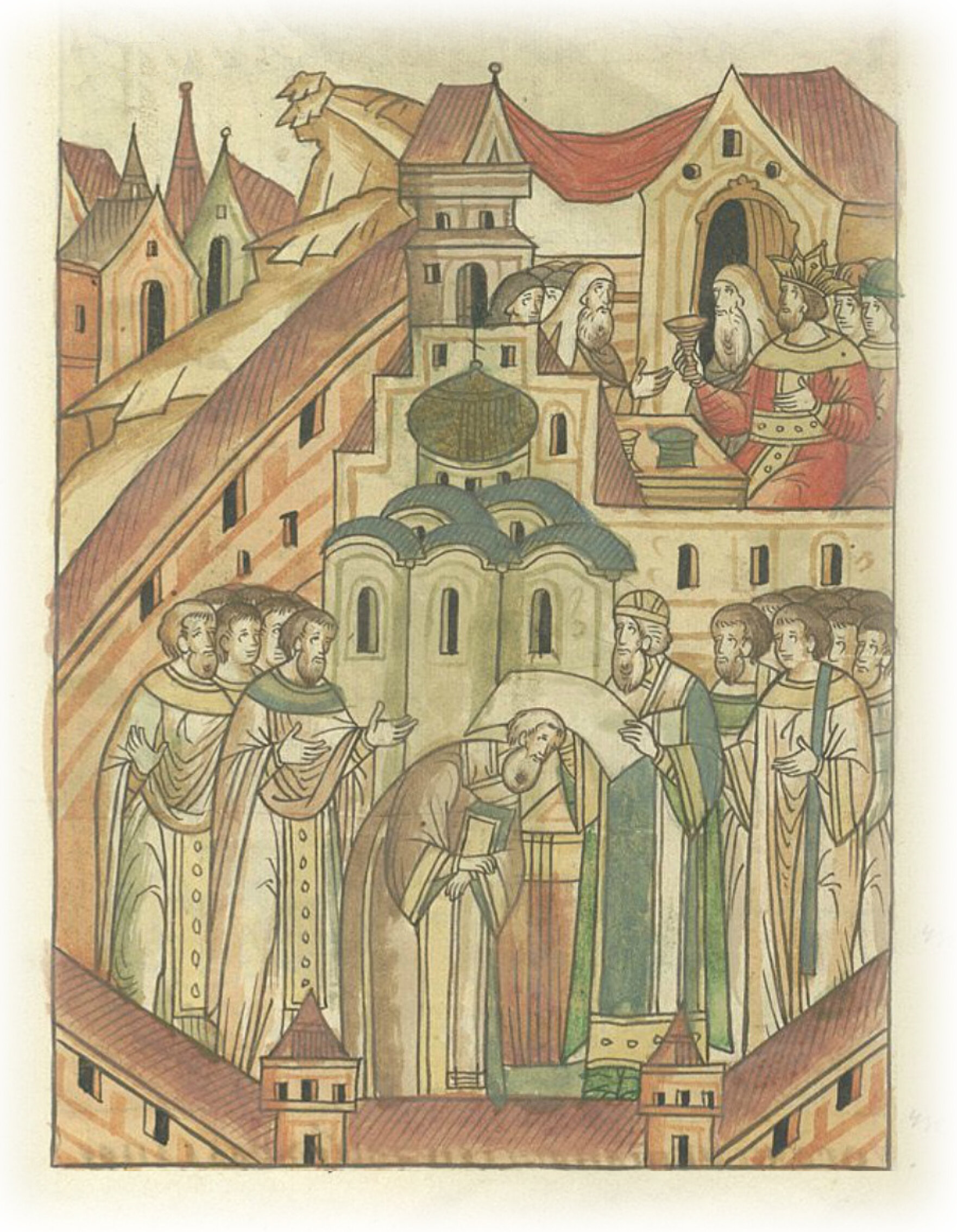 В 6816 (1308) году. Поставлен был в Царьграде Афанасием, патриархом Царьградским, Петр митрополит Киеву и всей Руси и принял от патриарха и от царя честь великую.