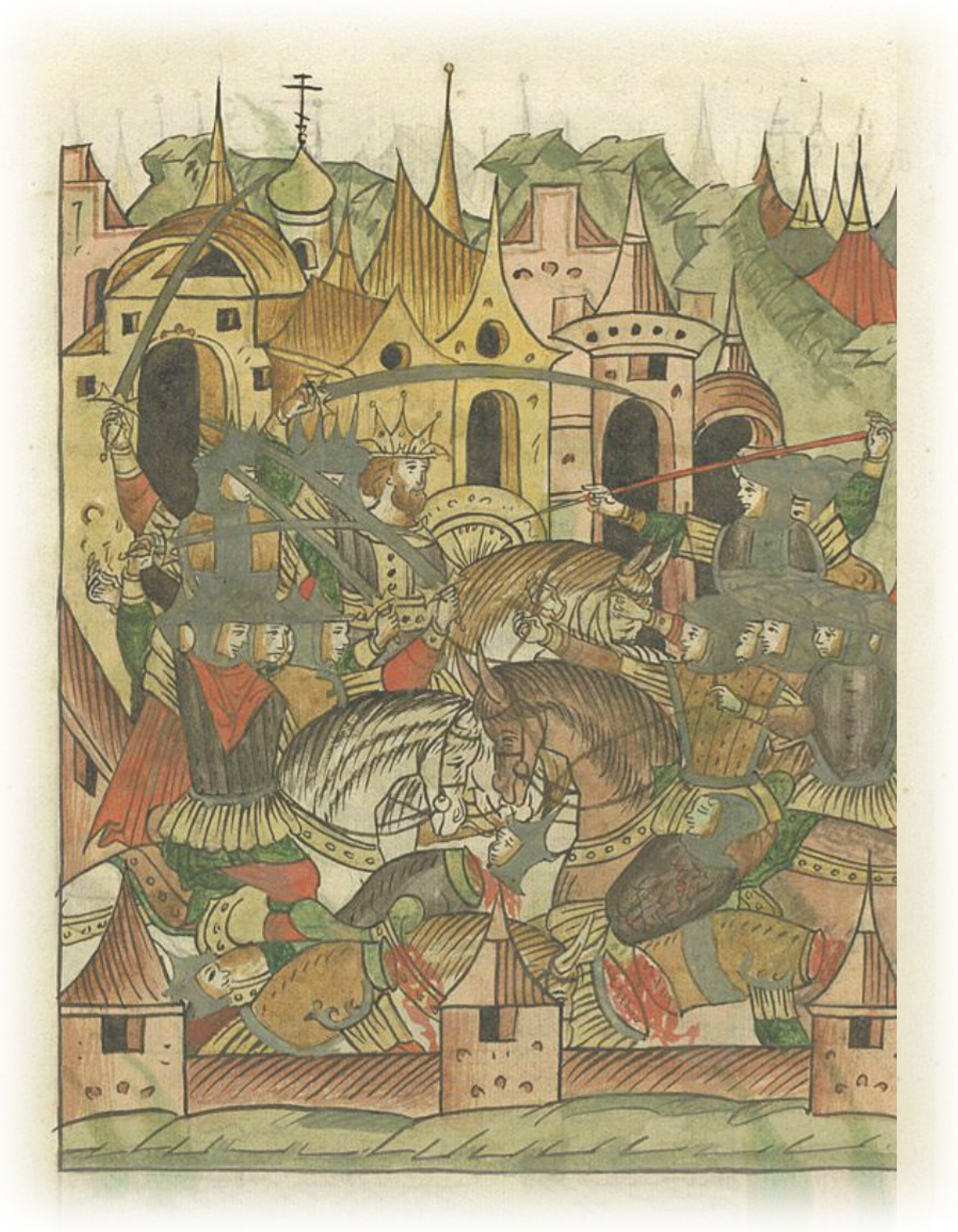 Языки говорят воеводам царя Ивана Васильевича, что магистр окопался большим рвом вокруг города Рындола, бьет из пушек и пищалей и приступает к Рындолу.