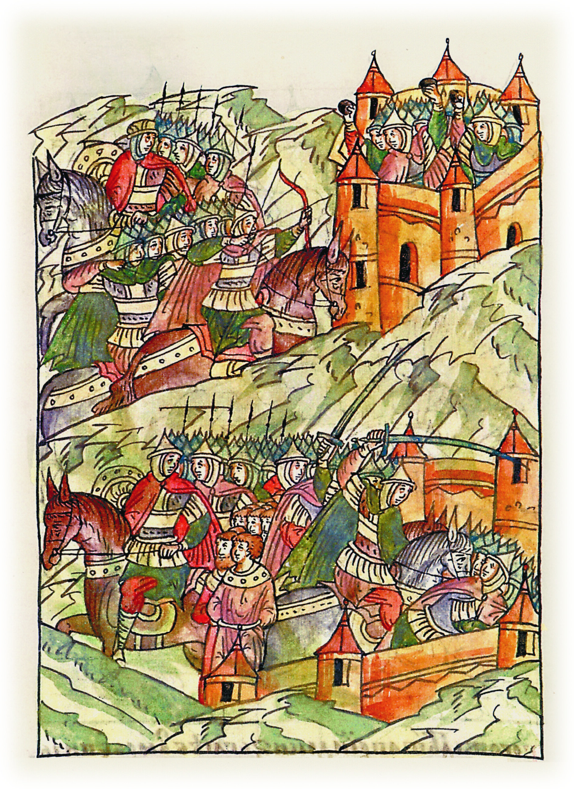 Языки говорят воеводам царя Ивана Васильевича, что магистр окопался большим рвом вокруг города Рындола, бьет из пушек и пищалей и приступает к Рындолу.