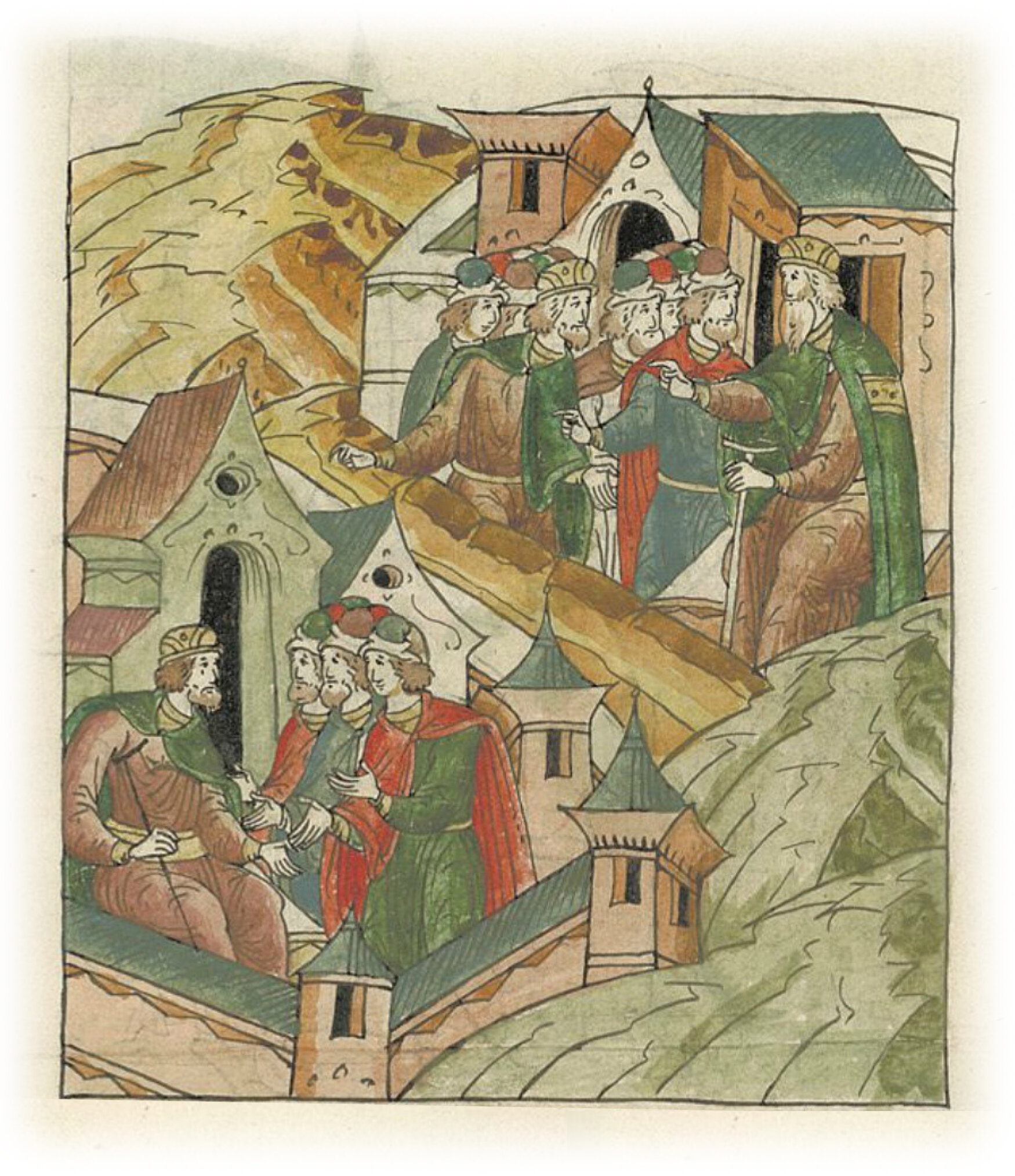 Ругодивские посадники Яким и Захар приезжают в Москву. Воеводы царя Ивана Васильевича Алексей Адашев и Иван Михайлов сообщают им, что государь пожалует их, если сдадут его воеводам помимо Ругодива Вышгород.