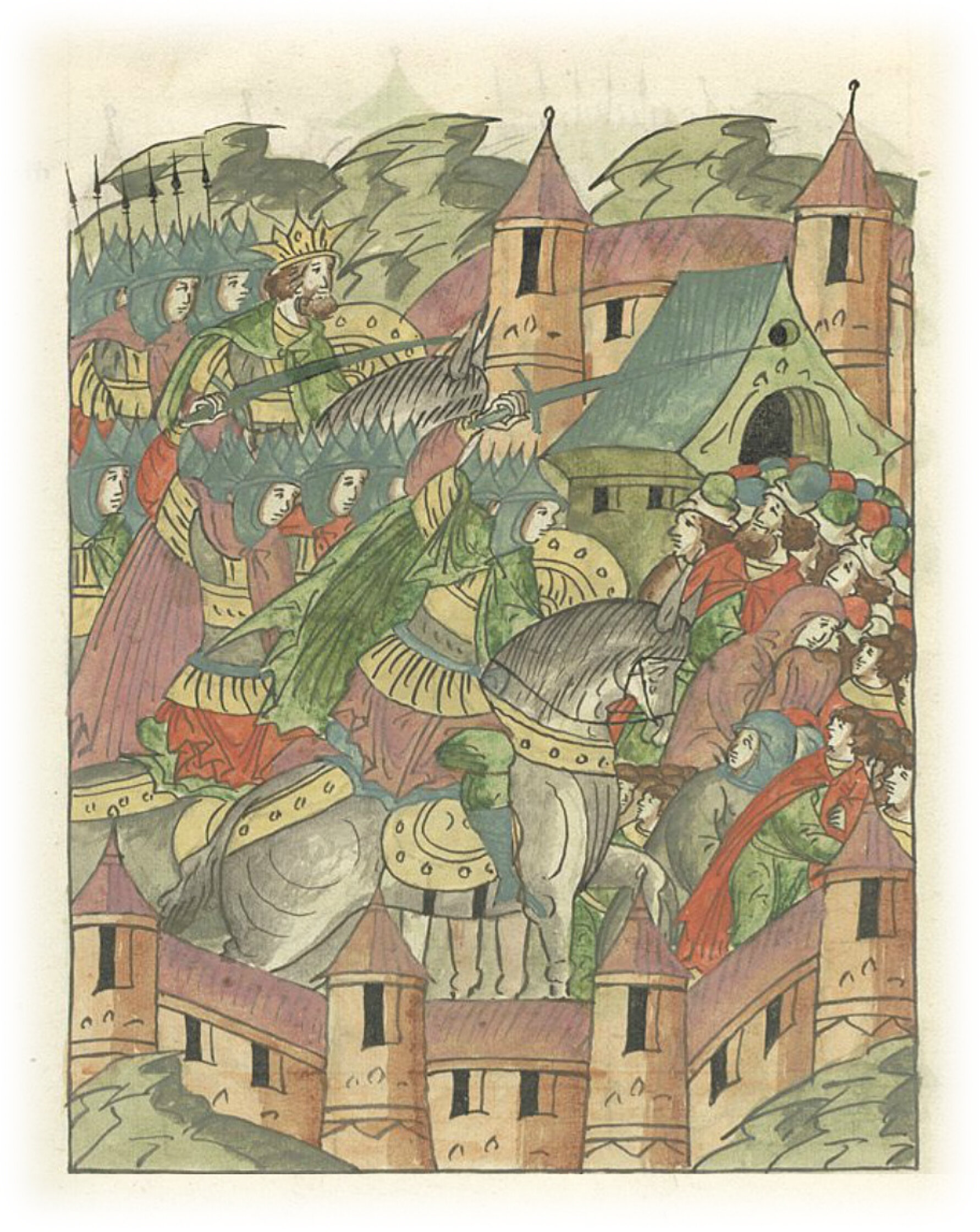 Языки говорят воеводам царя Ивана Васильевича, что магистр окопался большим рвом вокруг города Рындола, бьет из пушек и пищалей и приступает к Рындолу.
