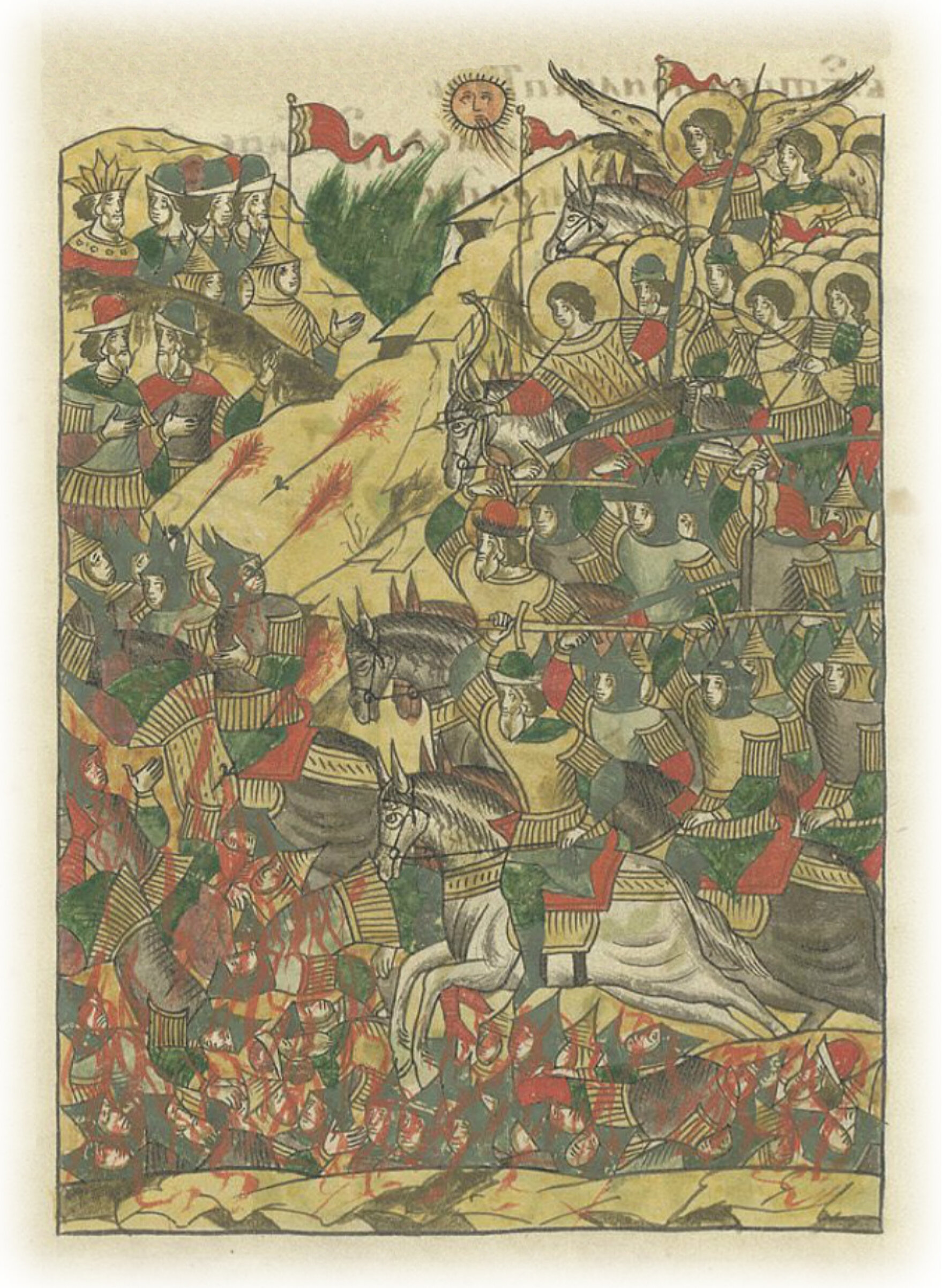 Увидели полки нечестивых двоих воевод, трисолнечные полки и пламенные их стрелы, что идут на них, и безбожные татары от страха Божия и от оружия христианского попадали. Вознес Бог десницу великого князя Дмитрия Ивановича на победу над иноплеменниками.
