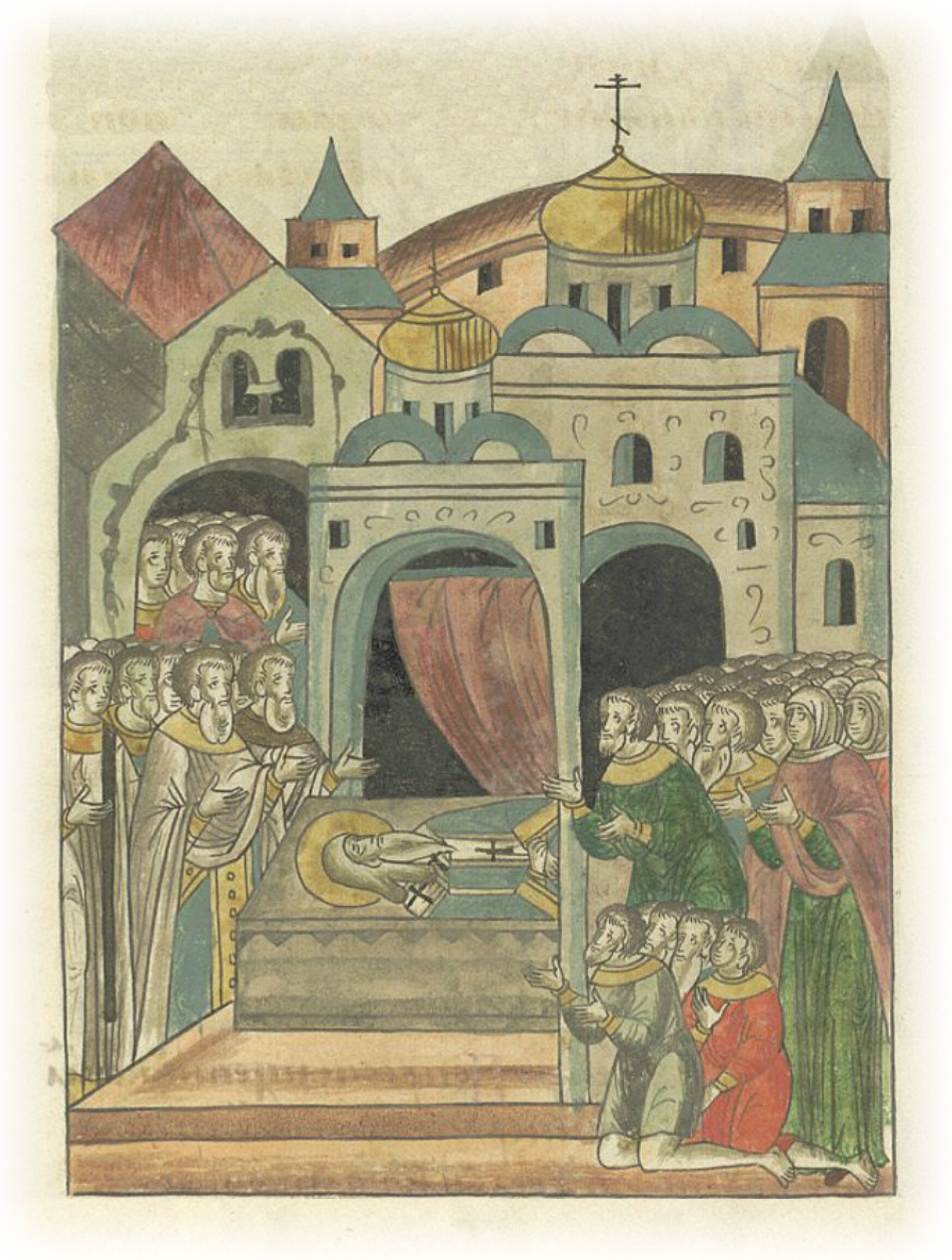 После постройки новой церкви тело митрополита Киевского и всея Руси Алексия кладут в церкви в пределе Благовещения Пречистой Богородицы.